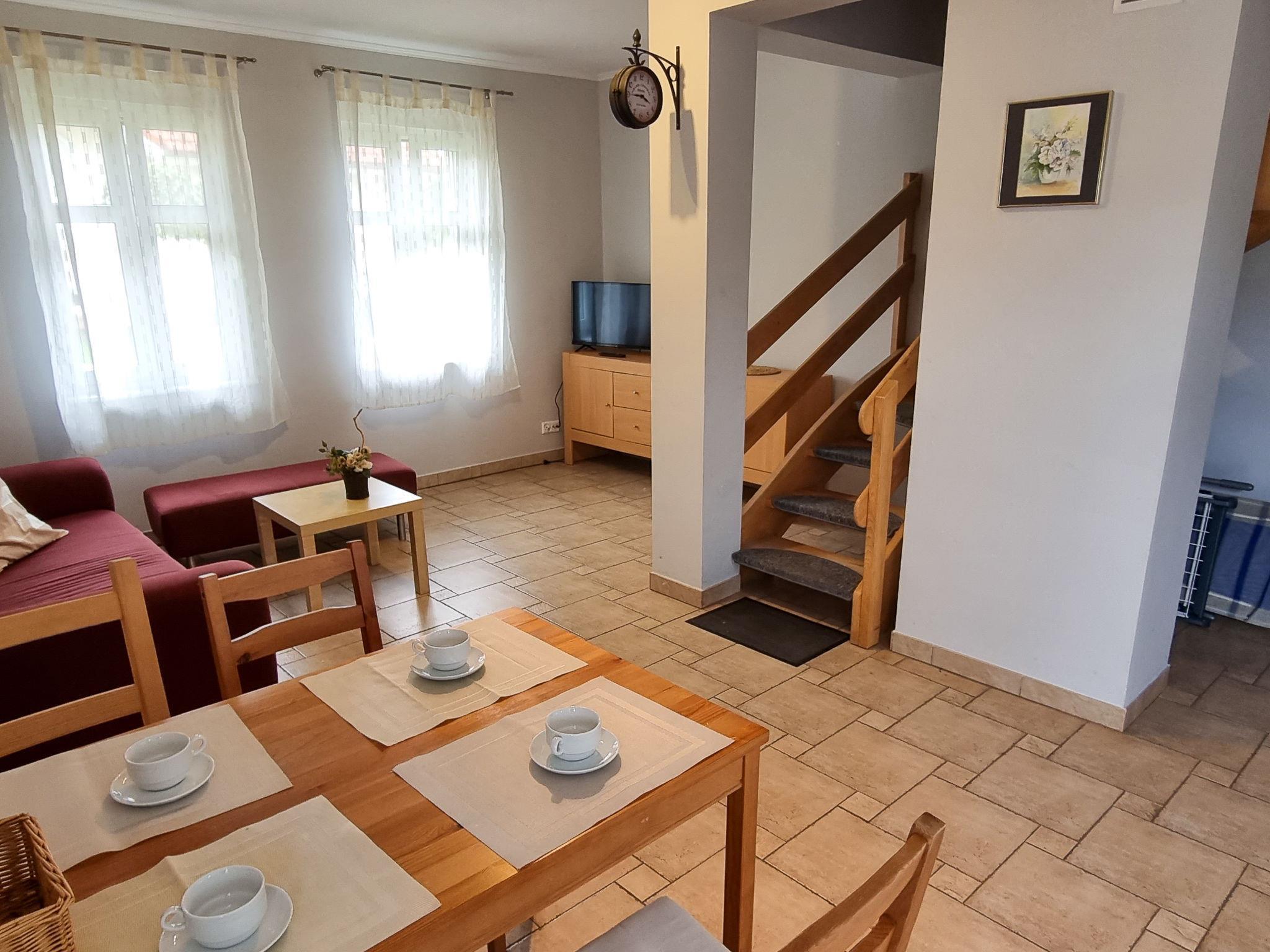 Reihenhaus "Domek Joanna". 5 Häuser im Ferienresort. Am Ortsrand, ruhige, sonnige Lage, 2 km vom Meer, 1.5 km vom See, 2 km vom Strand, im Grünen. Zur Mitbenutzung: Grundstück 2'000 m2 (eingezäunt), Rasen. Laube, Grill, Kinderspielplatz (Rutschbahn). In der Anlage: Trampolin. Parkplatz beim Haus. Lebensmittelgeschäft 100 m, Restaurant 100 m, Bushaltestelle, Bahnstation 1.5 km, Sandstrand 2 km. Tennis 1 km, Reitstall 1 km. Nahe gelegene Sehenswürdigkeiten: Park dinozaurów 1 km, Oceanarium 2 km. Bekannte Seen in der Umgebung sind gut erreichbar: Sarbsko 1,5 km, Lebsko 3 km. Wandergebiete: Slowinski Park Narodowy 3 km. Jugendgruppen nur auf Anfrage. Bitte beachten: Hauptstrasse 200 m vom Haus. Das Foto ist nur ein Hausbeispiel. Weitere Unterkünfte sind buchbar.