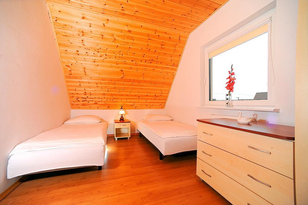 PL 80.8 Ferienhaus 2-6 Pers.: 3-Zimmerhaus mit ca. 40 qm Wohnfläche über 2 Etagen. Parterre: Wohn-/Essraum mit Couchgarnitur (Ausziehsofa 2 Pers.), Flachbild Sat-TV, Esstisch, Küchenzeile (2 E-Platten, Abzughaube). Bad/WC. Dachgeschoss mit Schrägen: Doppelzimmer. 2-Bettzimmer. Separates WC. Terrasse mit Sitzmöbeln.