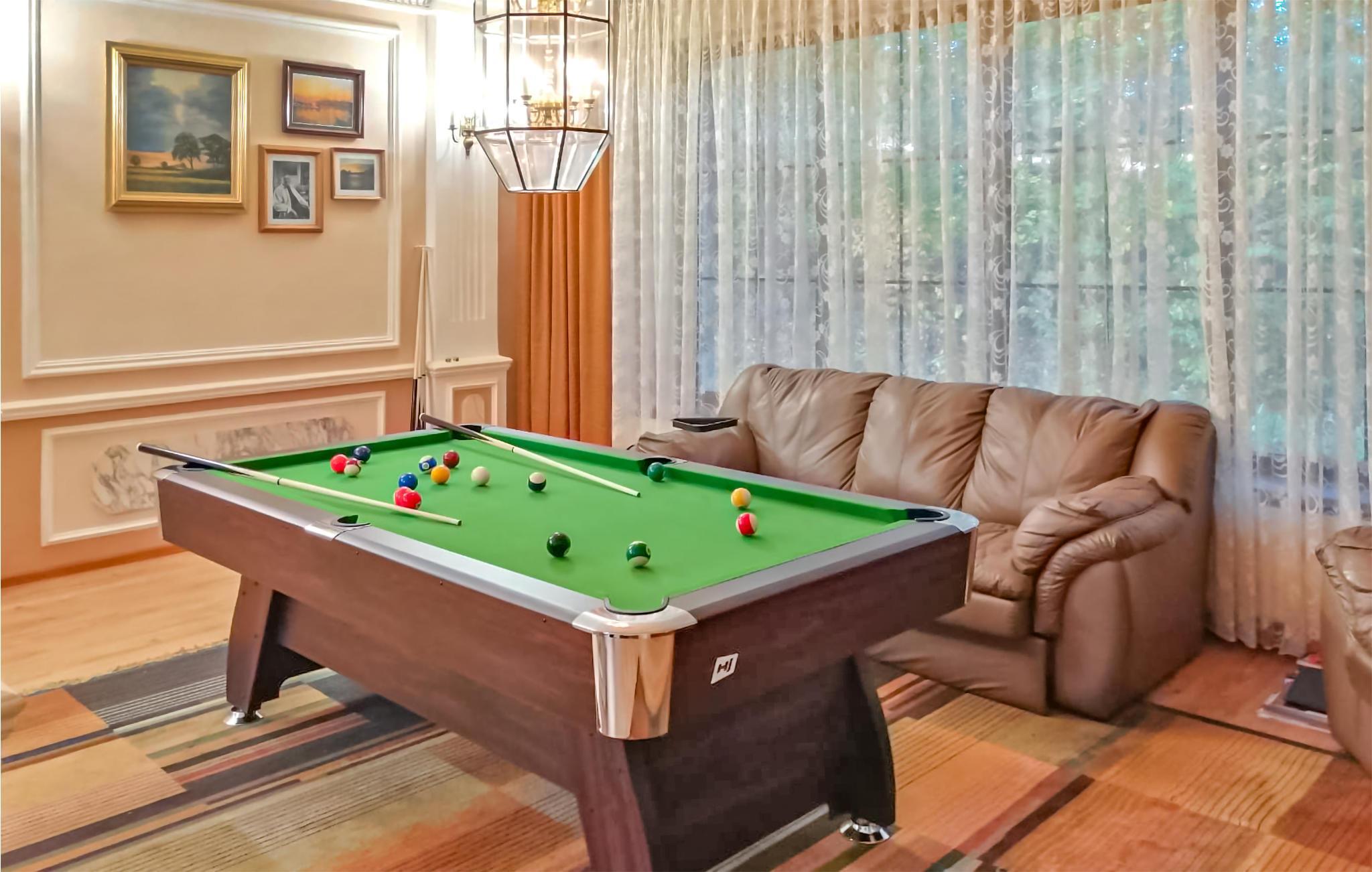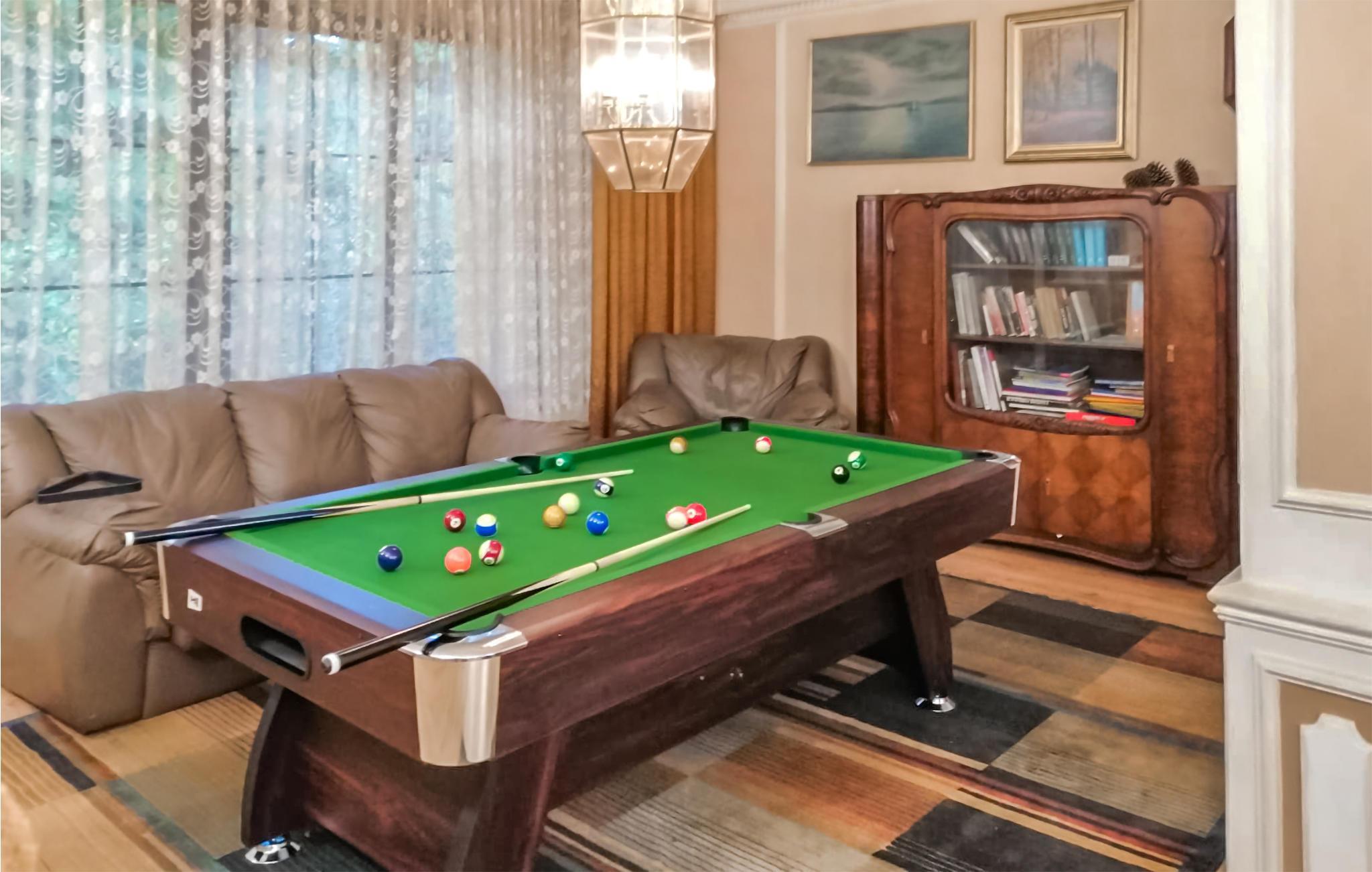 Gelegen in Letowo in wunderschöner Naturumgebung nahe dem See, heißt dieses geräumige Ferienwohnung auf zwei Ebenen Sie und Ihre große Familie herzlich willkommen. Das elegante Interieur im alten Stil, das schöne Dekor, die warmen Farben und die hölzernen Elemente tragen zu eine angenehmer Atmosphäre bei. Hier gibt es viele lauschige Ecken zum Verweilen. Zaubern Sie zusammen in der Küche und genießen Sie eine freudvolle Familienmahlzeit. Wer wird wohl später beim Billard gewinnen? Vielleicht möchten Sie lieber in den Sesseln vor dem Kamin sitzen und Karten spielen? Genießen Sie das Dessert auf der überdachten Terrasse. Der schöne Garten mit Blumen, Sträuchern und Bäumen ist ein Paradies für Kinder. Die Cabana dient an heißen Tagen auch als schattiges Plätzchen. Hier können Sie Ihren Durst nach einem lustigen Laufwettbewerb löschen.