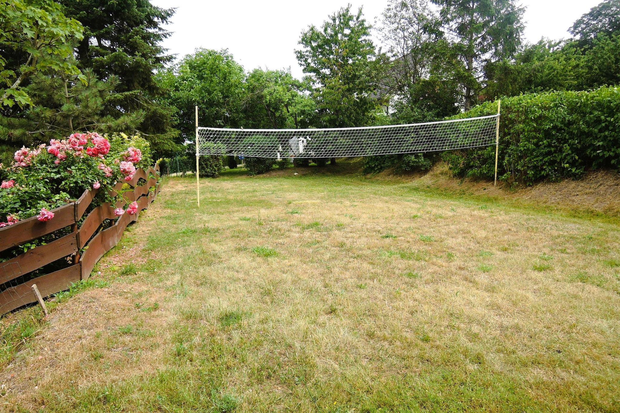 In der 1. Etage: (Küche(Gemeinschaftliche Nutzung mit anderen Gästen)(Wasserkocher, Kochendwasserhahn, Kochherd(4 Kochplatten, Gas), Espressomaschine, Mikrowelle), Wohn-/Schlafzimmer(Doppelbett, TV, Esstisch, Wasserkocher, Kühlschrank), Badezimmer(Dusche, Waschbecken, Toilette)) Gartenmöbel, Balkon, Garten(Gemeinschaftliche Nutzung mit anderen Gästen, umzäunt, angelegt, 3000 m2), Liegen, Grill, Parkplatz, Spielgeräte, Fahrräder verfügbar, Volleyballfeld