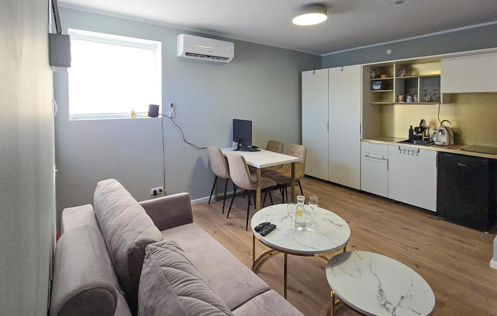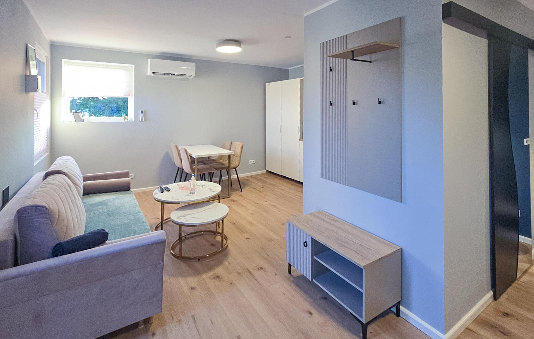 Diese moderne und geschmackvoll eingerichtete Ferienwohnung bietet Ihnen ein behagliches Refugium, um eine harmonische Auszeit fernab vom Alltag zu verbringen. Zaubern Sie leckere Gerichte in der offenen Küche und nehmen Sie am einladenden Esstisch Platz. Entspannen Sie auf dem gemütlichen Sofa mit einem guten Buch oder lassen Sie das Erlebte bei einem Glas Wein Revue passieren.