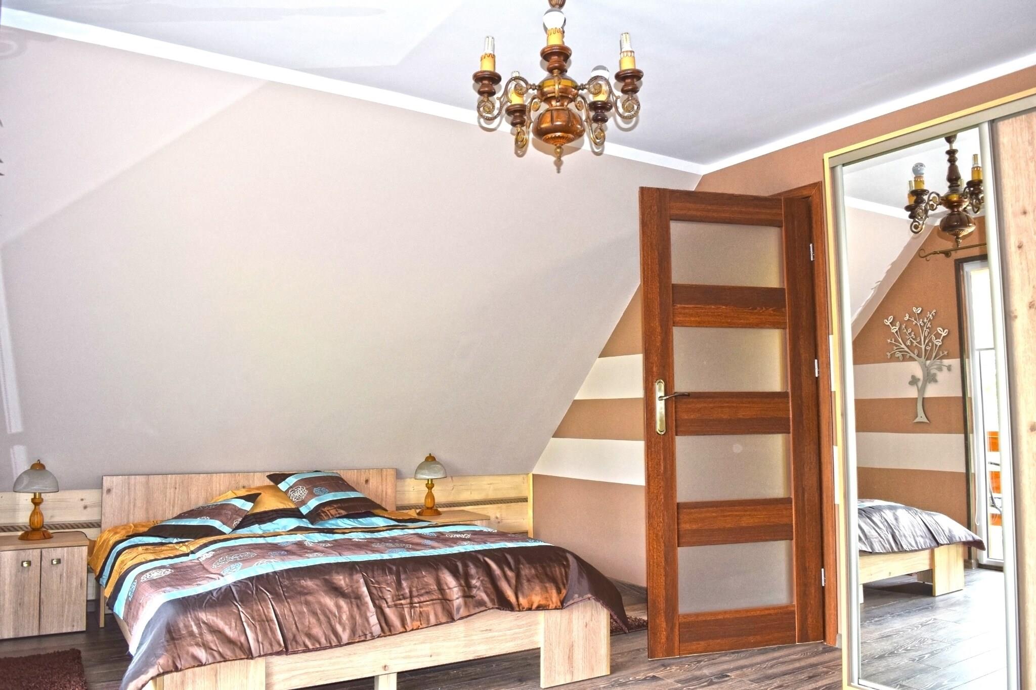 In perfekter Lage am Rande eines Sommerferienortes, auf einem privaten, grünen Grundstück, nur wenige Meter vom Ufer des Goszcz-Sees (und wenige Dutzend Meter von einem Sandstrand) entfernt. Dieses komfortable, zweistöckige Ferienhaus verfügt über eine überdachte Terrasse mit Seeblick. Die Terrasse ist mit Gartenmöbeln und Liegestühlen ausgestattet. Im Erdgeschoss befinden sich ein geräumiges Wohnzimmer (mit Fernseher, Esstisch, Kamin und Doppelschlafsofa), eine gut ausgestattete Küche und ein Badezimmer mit Dusche. Im Obergeschoss befinden sich zwei Doppelzimmer. Das Haus ist klimatisiert und kann gegen Aufpreis auch beheizt werden. Ein Kamin dient als zusätzliche Heizquelle. WLAN ist verfügbar. Das umzäunte Grundstück (zur exklusiven Nutzung durch die Gäste) bietet einen Spielplatz und einen großen, überdachten Pavillon mit Grill und Räucherkammer. Außerdem gibt es eine Feuerstelle, eine Hängematte und einen sicheren Parkplatz. Gegen eine zusätzliche Gebühr können Sie Fahrräder, ein Tretboot, ein Ruderboot und ein Stand-Up-Paddleboard mieten (Boot und Tretboot sind bei einem Aufenthalt von mindestens 10 Tagen inklusive). Im Preis enthalten sind Bettwäsche, Handtücher, Strom, Wasser, Internet und Parkplatz. Ein Kinderbett und ein Hochstuhl sind auf Anfrage erhältlich. Der Goszcza-See ist durch ein System von Flüssen und Kanälen mit benachbarten Seen verbunden. An warmen Sommertagen bietet er Badegästen eine willkommene Abkühlung. Auch Angler kommen hier voll auf ihre Kosten (Schleie, Hecht, Zander und Aal). Die Gemeinde Lubrza bietet Touristen zahlreiche Attraktionen. Das hervorragende Klima, die einzigartige Landschaft mit ihren vielen Seen und Wäldern laden zur Erholung ein. Zu den landschaftlichen Reizen zählen die zahlreichen, bewaldeten Moränenhügel. Es lohnt sich, den reizvollen Festungsweg zu erkunden, eine malerische Kajaktour zu unternehmen oder auf dem Seerosenweg zu wandern oder Rad zu fahren.