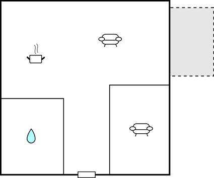Wohnraum/Küche 20m2 - 2 Schlafmöglichkeiten. (Schlafsofa,Matratze,Sonstiges).