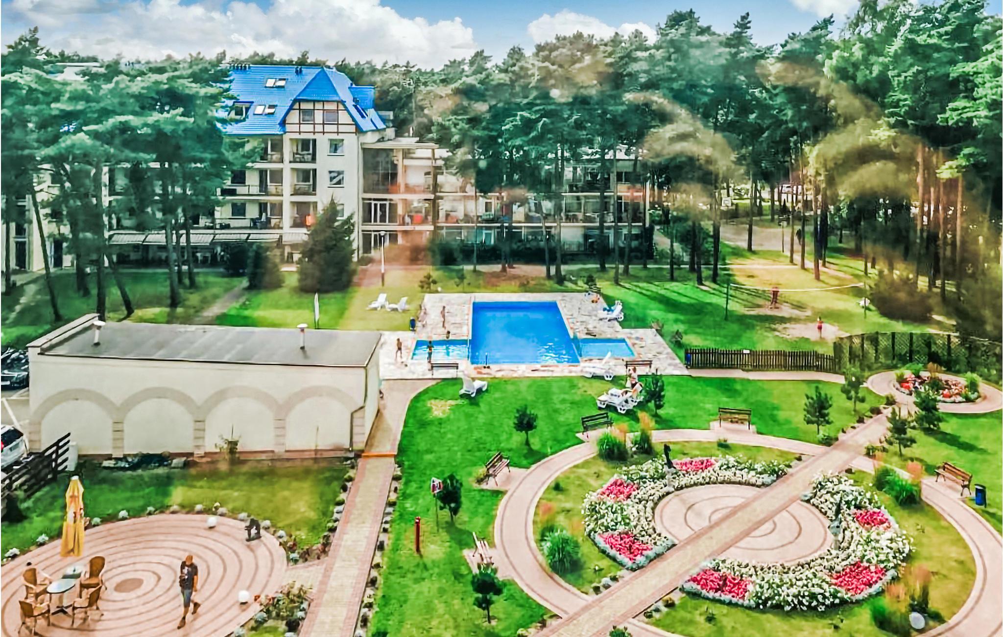 Diese Wohnung liegt auf einem großen Grundstück mit 20.000 Quadratmetern, die Sie mit den anderen Mietern des großen Hauses teilen. Sie können nach dem Aufstehen sofort auf der offenen Terrasse frühstücken oder im großen gemeinsamen Außenpool schwimmen.