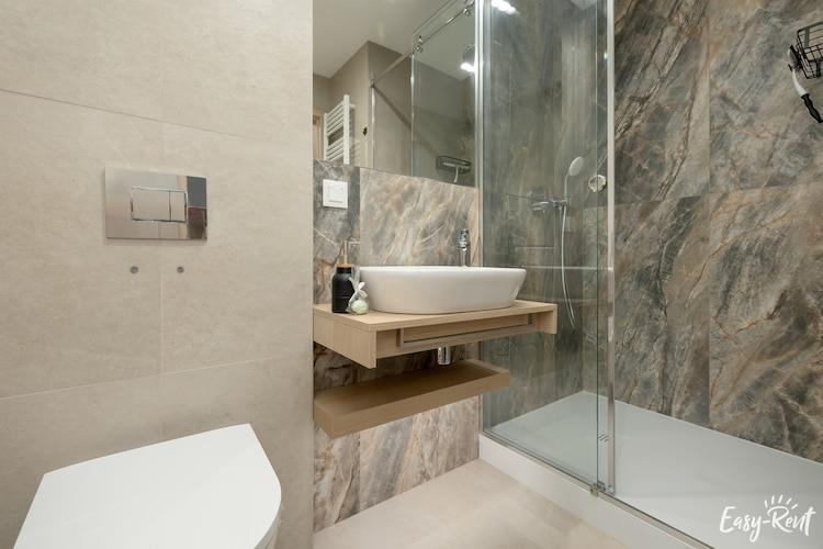 Perfekte Lage, ganz nah am Meer, 300 m zum Strand entlang eines Weges durch den Wald. Ein modernes Apartmentgebäude in einem umzäunten Bereich mit einem Sommerschwimmbad und einem Spielplatz. Ein gemütliches, schön eingerichtetes Ferienstudio im zweiten Stock (es gibt einen Aufzug). Das Studio ist ein offener Raum, der sowohl als Wohnzimmer als auch als Schlafzimmer dient. Es gibt einen Tisch, einen Fernseher, ein großes Doppelbett und einen ausklappbaren Einzelsessel. Offene Küche. Badezimmer mit Dusche. Es gibt einen großen Balkon mit Gartenmöbeln. Es gibt eine Klimaanlage mit Kühl- und Heizfunktion. Sichere Parkplätze stehen zur Verfügung. Das gemütliche Resort verfügt über einen Sommerpool mit Hydromassage (geöffnet im Juli und August). Sonnenliegen umgeben den Pool. Es gibt auch einen attraktiven Spielplatz. Im Preis des Aufenthalts sind enthalten: Strom- und Wasserverbrauch, Klimaanlage, Parkplatz, Nutzung des Sommerschwimmbades (Juli - August), Hochstuhl (vorherige Reservierung erforderlich). Lukecin ist eine kleine, charmante Küstensiedlung zwischen Pobierowo und Dziwnów, gelegen inmitten eines Nadelwaldes, der das Meer von der Stadt trennt. Wenn Sie bei der Auswahl einer Unterkunft am Meer einen ruhigen Ort suchen, an dem Sie aktiv entspannen können, ist Lukecin eine gute Wahl. Sie werden die hier herrschende Ruhe und Stille sicherlich zu schätzen wissen. Auch in der Ferienzeit herrscht hier kein Gedränge. Am Strand gibt es eine kleine Aussichtsplattform. Kinder freuen sich über einen Besuch im Walpark im nahegelegenen Rewal (ca. 10 km) mit echten Meeresriesen. Der Stolz der Stadt und der gesamten Region ist die renovierte Schmalspurbahn, die Ihnen einen reizvollen Ausflug in benachbarte Kurorte ermöglicht (nächstgelegener Bahnhof: Trzesacz – 8,5 km).