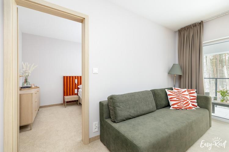 Eine Traumlage, ganz nah am Meer, 300 m zum Strand über einen Weg durch den Wald. Ein modernes Apartmentgebäude auf einem eingezäunten Gelände, mit einem Sommerschwimmbad und einem Spielplatz. Gemütliche, schön eingerichtete Ferienwohnung im 2. Stock (Lift vorhanden). Es gibt ein geräumiges Wohnzimmer mit einem Doppelschlafsofa, einem Fernseher und einem Tisch. Das Wohnzimmer ist mit der Küche verbunden. Es gibt ein Schlafzimmer mit einem bequemen Doppelbett und ein Badezimmer mit Dusche. Zur Wohnung gehört ein großer Balkon mit Gartenmöbeln. Es gibt eine Klimaanlage mit Kühl- und Heizfunktion. WLAN ist verfügbar. Sicheres Parken vor Ort. Das gemütliche Resort verfügt über einen Sommerpool mit Hydromassage (geöffnet im Juli und August). Der Pool ist von Liegestühlen umgeben. Außerdem gibt es einen attraktiven Spielplatz. Im Preis Ihres Aufenthalts sind enthalten: Strom- und Wasserverbrauch, Klimaanlage, Parkplatz, Internet, Nutzung des Sommerschwimmbads (Juli - August), Hochstuhl (nach vorheriger Anmeldung). Lukecin ist eine kleine, charmante Küstenstadt zwischen Pobierowo und Dziwnów, gelegen inmitten eines Nadelwaldes, der das Meer von der Stadt trennt. Wenn Sie bei der Wahl Ihrer Unterkunft am Meer einen ruhigen Ort zur aktiven Erholung suchen, ist Lukecin eine gute Wahl, Sie werden die hier herrschende Ruhe und Stille sicherlich zu schätzen wissen. Selbst in der Ferienzeit herrscht hier kein Gedränge. Am Strand gibt es eine kleine Aussichtsplattform. Kinder werden von einem Besuch des Walparks im nahegelegenen Rewal (ca. 10 km) mit echten Meeresriesen begeistert sein. Der Stolz der Stadt und der gesamten Region ist die renovierte Schmalspurbahn, die für einen reizvollen Ausflug in die benachbarten Ferienorte genutzt werden kann (nächster Bahnhof: Trzesacz – 8,5 km).