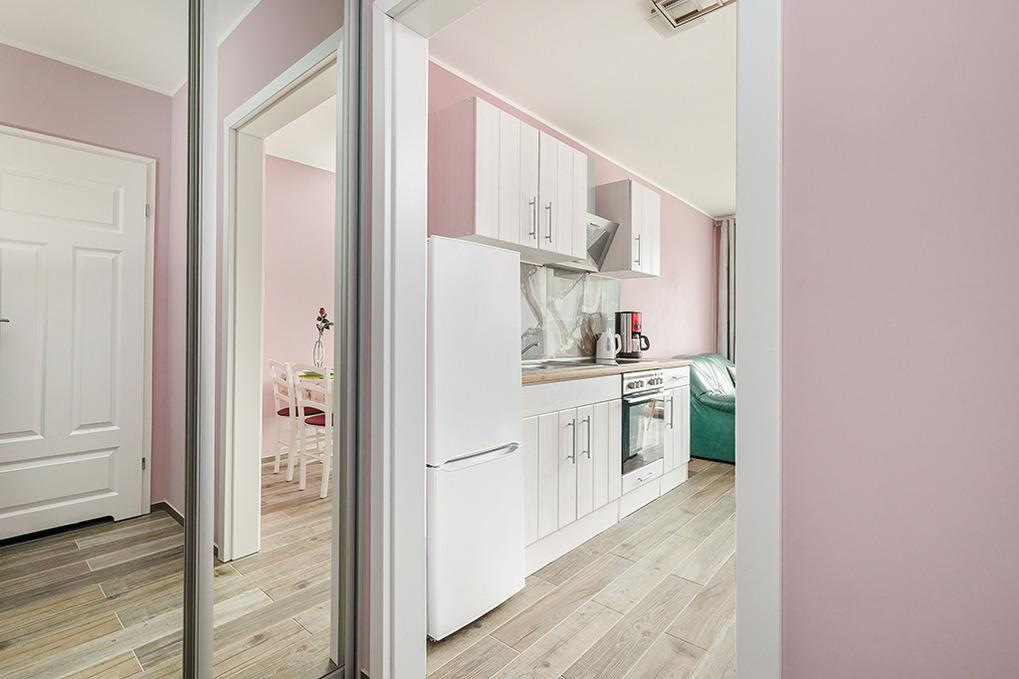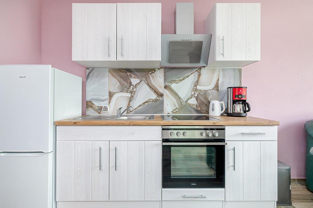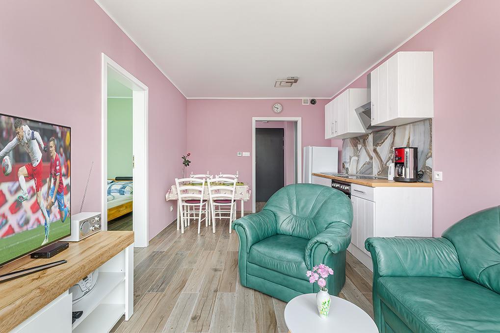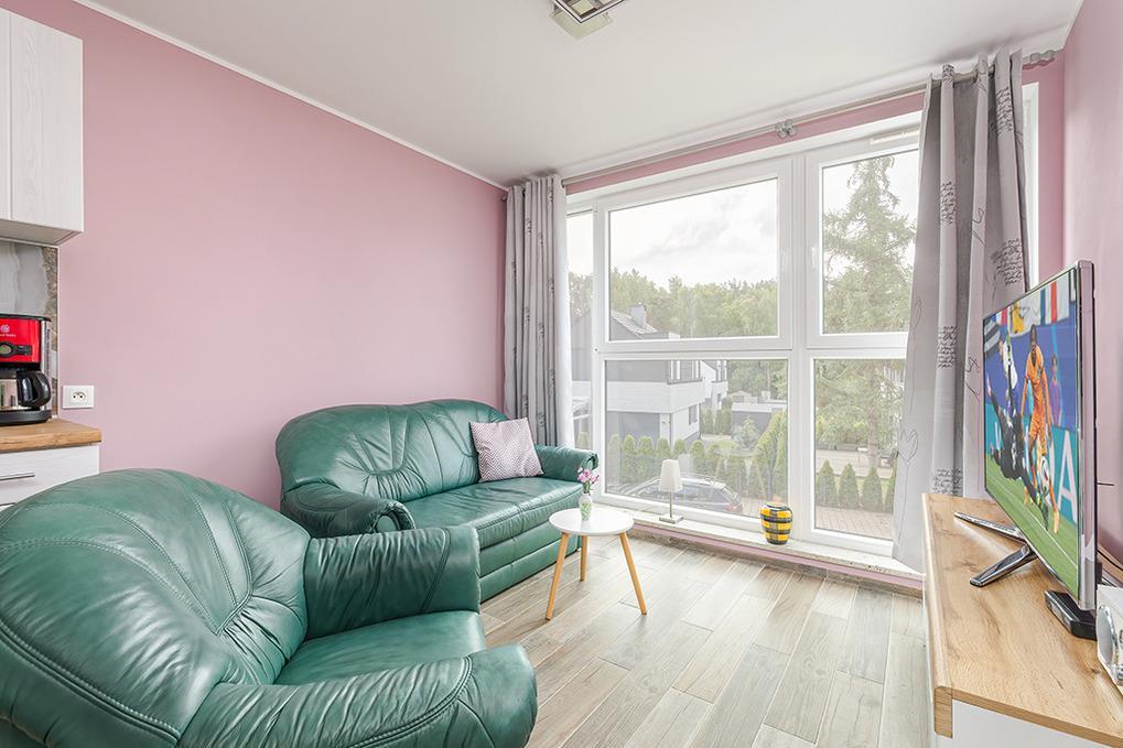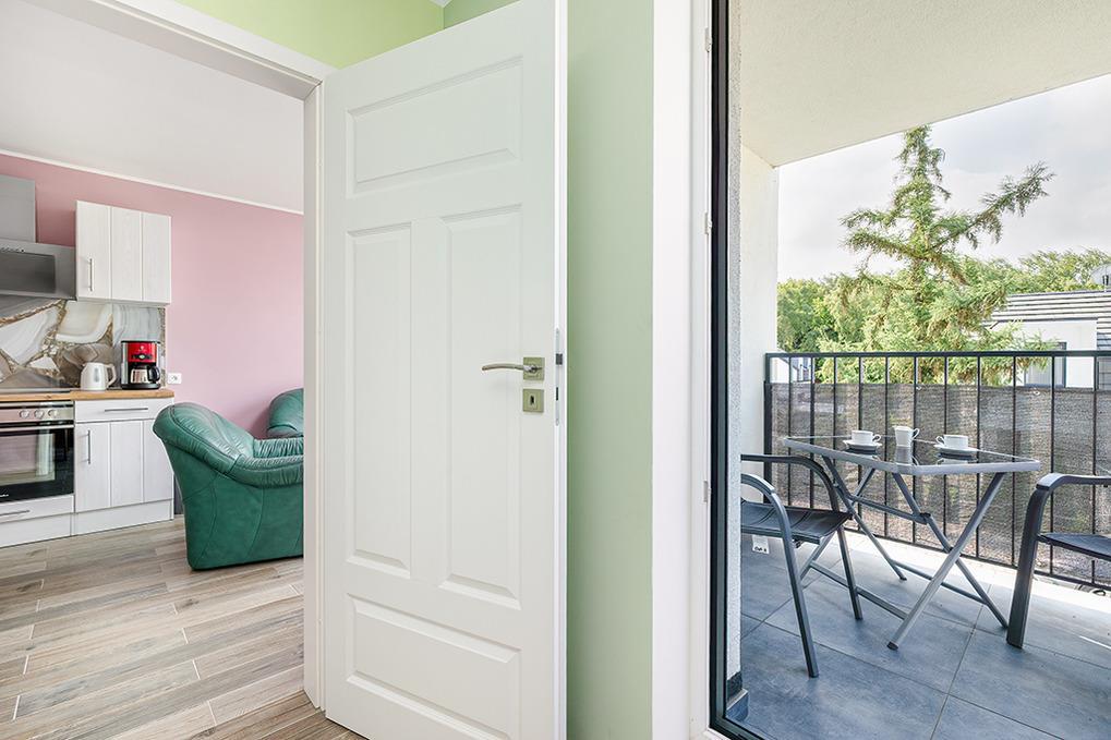 PL 36.22 Wohnung 1-4 Pers.: Geschmackvoll eingerichtete 2-Zimmerwohnung mit 35 qm Wohnfläche in der 1. Etage. Gemütlich möblierter, heller Wohn-/Essraum mit bodentiefer Fensterfront, Couchgarnitur (Schlafsofa 2 Pers.), SMART-TV, Esstisch, Küchenzeile (4 Pl.-Ceranfeld, Abzugshaube, Gefrierschrank 60 l, Backofen). Doppelzimmer. Modernes Bad mit Regendusche, Wb,WC. Balkon mit Sitzmöbeln.