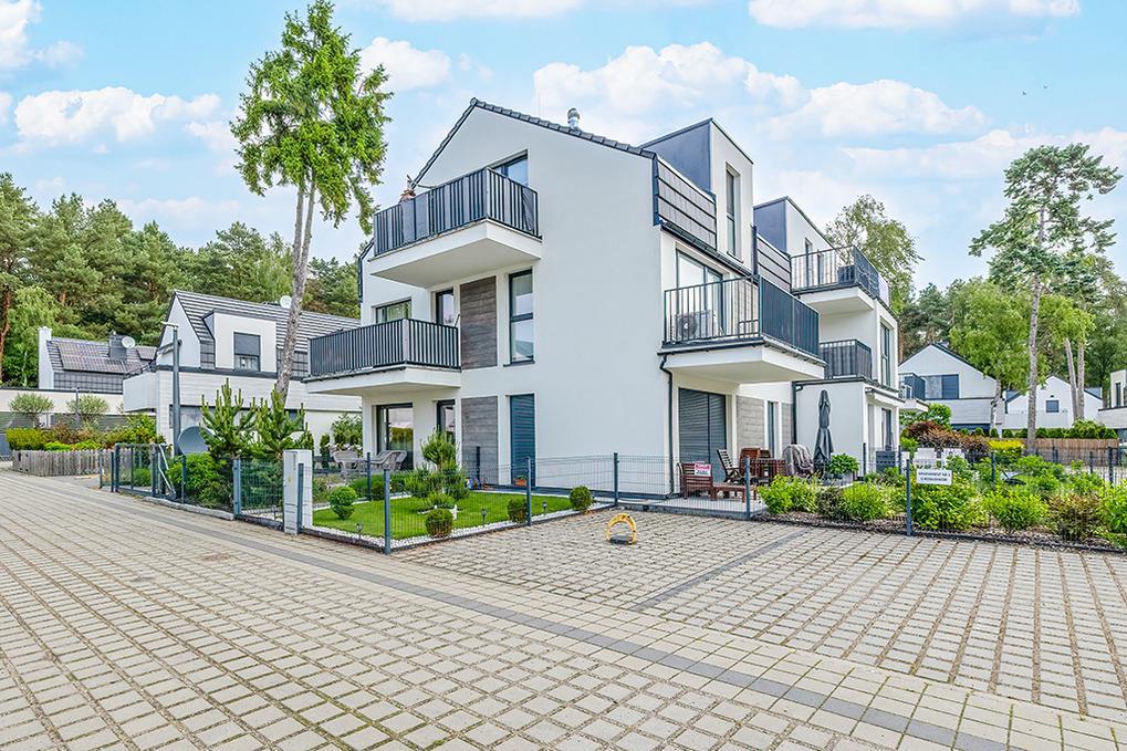 Ort: Lukecin. Sehr schöne, ruhige Lage am Waldrand in einer bewachten Ferienhaussiedlung. Ostseestrand 700 m. Ortsmitte mit Cafés, Restaurants 300 m. Lebensmittelgeschäft 200 m. Großer Spielplatz mit Klettergerüst, Rutsche, Sandkasten und Schaukeln 300 m.