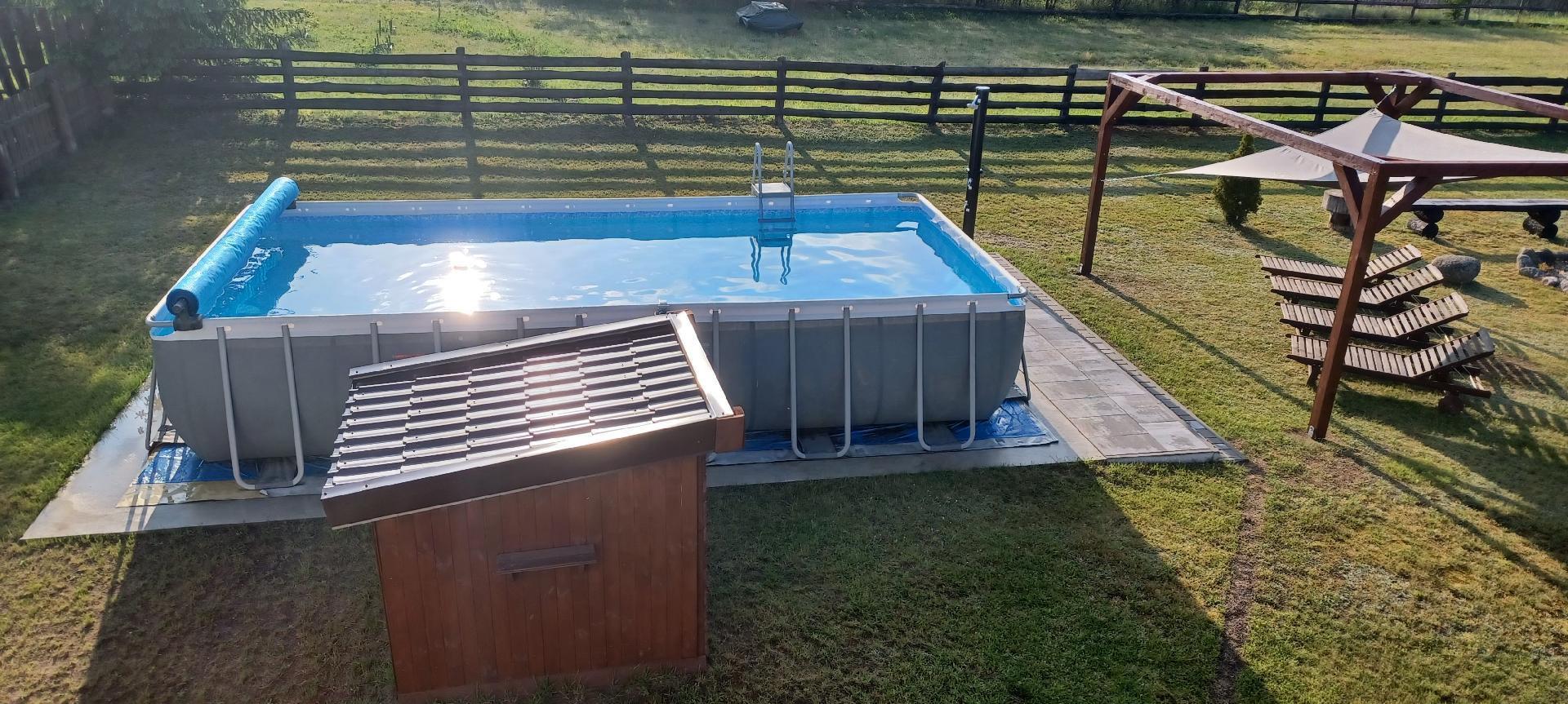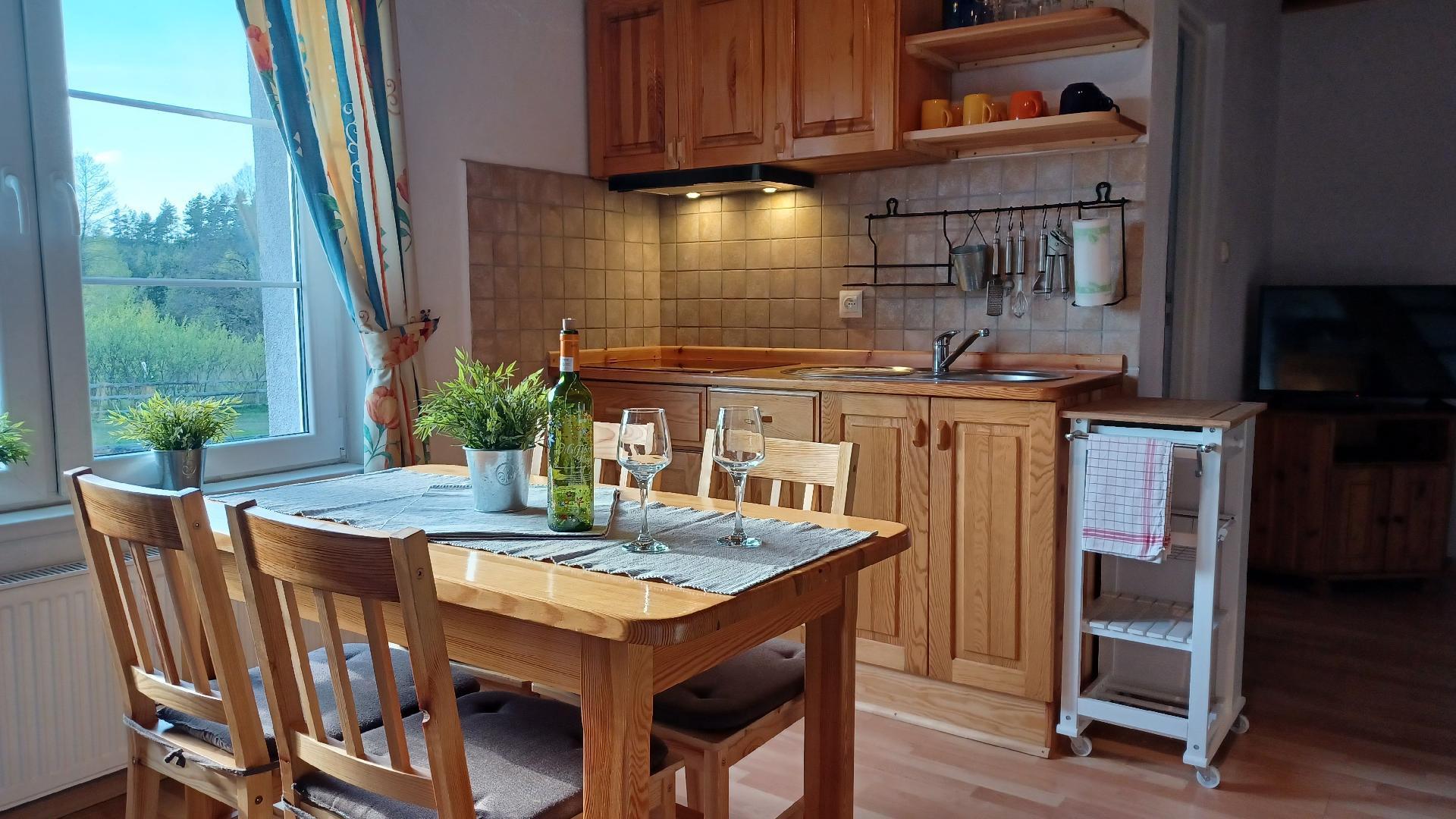 Umgeben von Weiden, Wiesen, Wäldern und sauberen Seen befindet sich auf einem ca. 7000 m² großen Grundstück das Ferienhaus im Dorf Plichta.