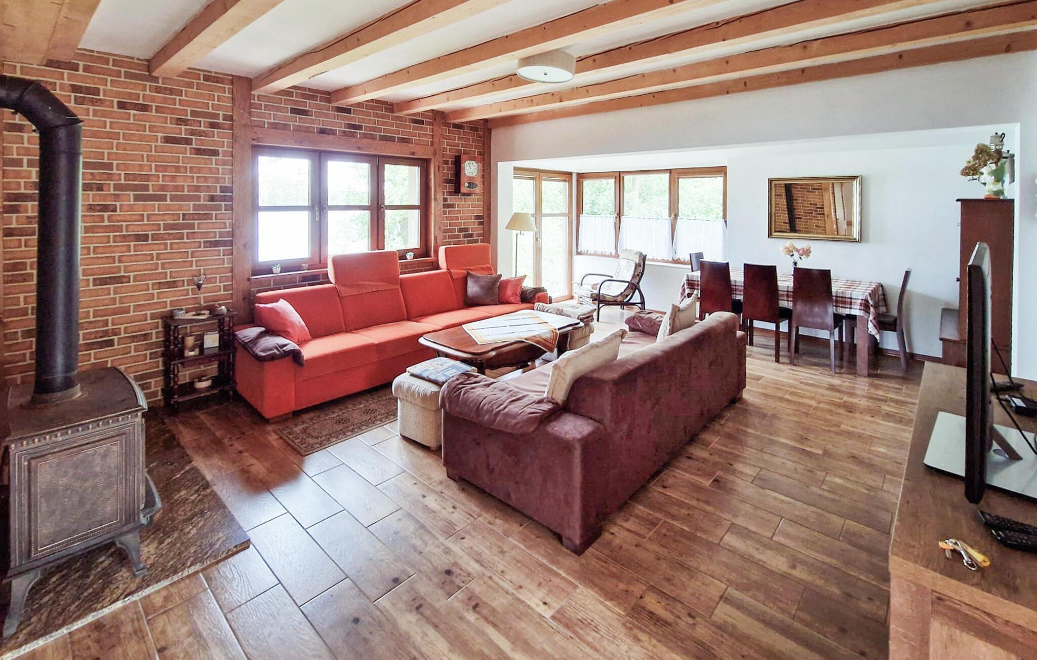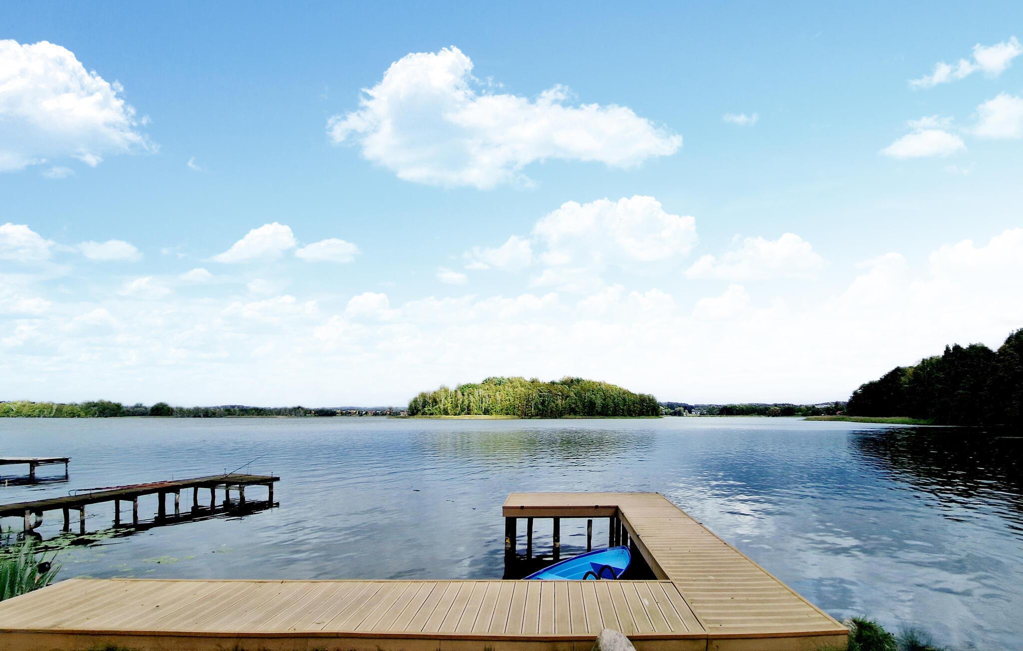 Dieses geräumige Ferienhaus liegt auf einem schönen, eingezäunten Grundstück. Ein Teil des Grundstücks hat Zugang zum See. Sie haben ein Boot, eine Schaukel, Bänke, eine Brücke, einen Grill, Gartenmöbel und einen Feuerplatz zur Verfügung. Das Haus ist gemütlich und vorteilhaft eingerichtet. Sie können das Fahrrad vor Ort gerne benutzen. Reiten und Reitunterricht sind unweit vom Ferienhaus möglich (im Ort Dorotowo). Auf dem Wulpinskie See finden Sie eine Ruhezone. Das Haus ist mit einer Alarmanlage ausgestattet.