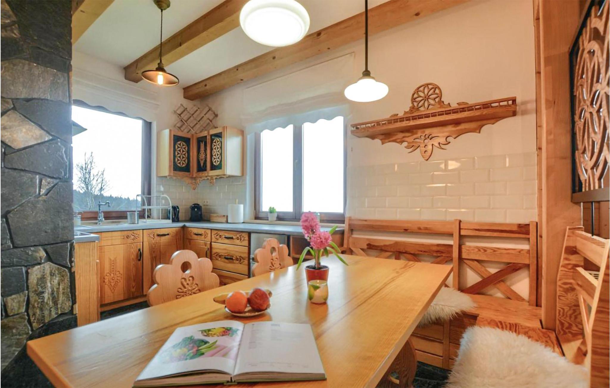 Willkommen in diesem einladenden Ferienhaus, das Sie inmitten der wunderschönen Berglandschaft begrüßt und ideale Bedingungen für einen fantastischen Familienurlaub bietet. Das Ambiente des Hauses ist wohnlich, sein rustikaler Charme entsteht durch zahlreiche Elemente aus Holz, die auf eine moderne und komfortable Ausstattung treffen - hier können Sie es sich gemeinsam gemütlich machen. Machen Sie es sich abends am Esstisch in der Küche gemütlich und lassen Sie die Erlebnisse des Urlaubstages noch einmal Revue passieren oder kuscheln Sie sich auf dem Sofa zusammen und lauschen Sie dem Prasseln der Flammen im Kamin.