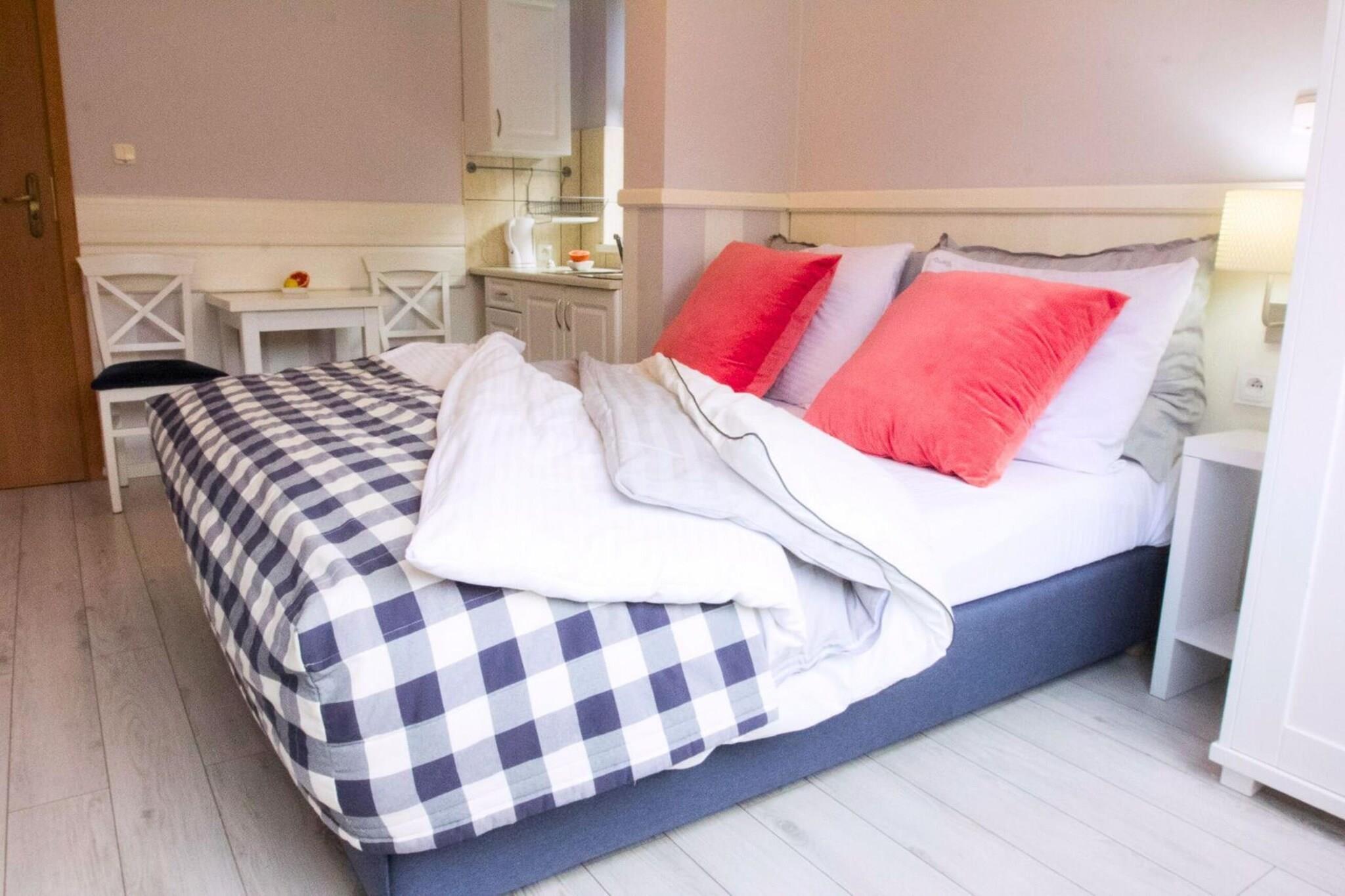 Das Doppelapartment befindet sich in einer komfortablen Villa in der Nähe des Nationalparks Wolin, 10 Minuten vom Strand und 250 m vom Stadtzentrum entfernt. Die Wohnung befindet sich im Erdgeschoss. Es verfügt über einen separaten Eingang von außen. Miedzyzdroje ist ein Ferienort mit einzigartiger Atmosphäre, der bei Touristen, die ihren Urlaub am Meer verbringen, sehr beliebt ist und oft sogar als Sommerhauptstadt Westpommerns bezeichnet wird. Die Stadt liegt zwischen der Klippenküste und dem Wolin-Nationalpark. Von hier aus können Besucher die wunderschöne Landschaft und wilde Vegetation bewundern, den Türkissee, das Bisonreservat und das Naturmuseum besuchen. Der Ruhm von Miedzyzdroje wird durch die häufigen Besuche der größten Stars des polnischen Kinos noch verstärkt. Jedes Jahr finden hier Chor- und Filmfestivals statt.