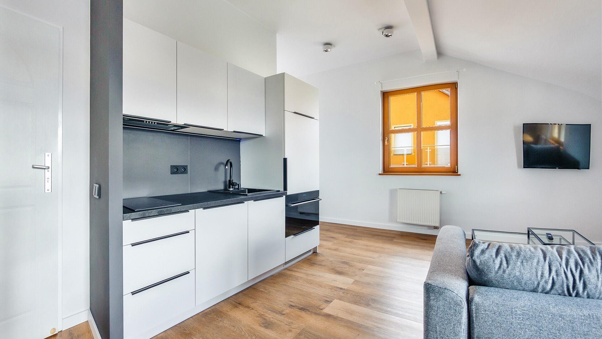 • Haustiere sind in der ausgewählten Wohnung erlaubt. Die Kosten für den Aufenthalt mit einem Haustier betragen 40 PLN pro Tag.