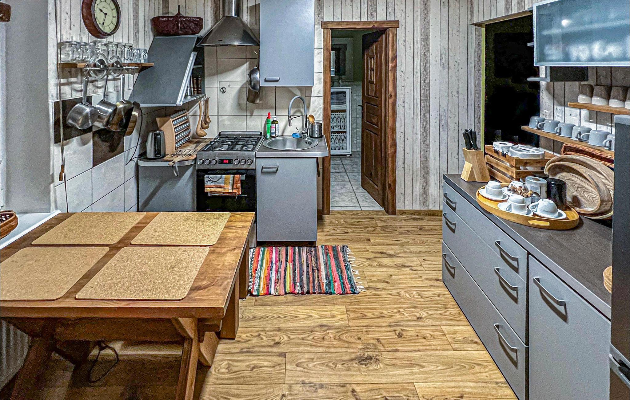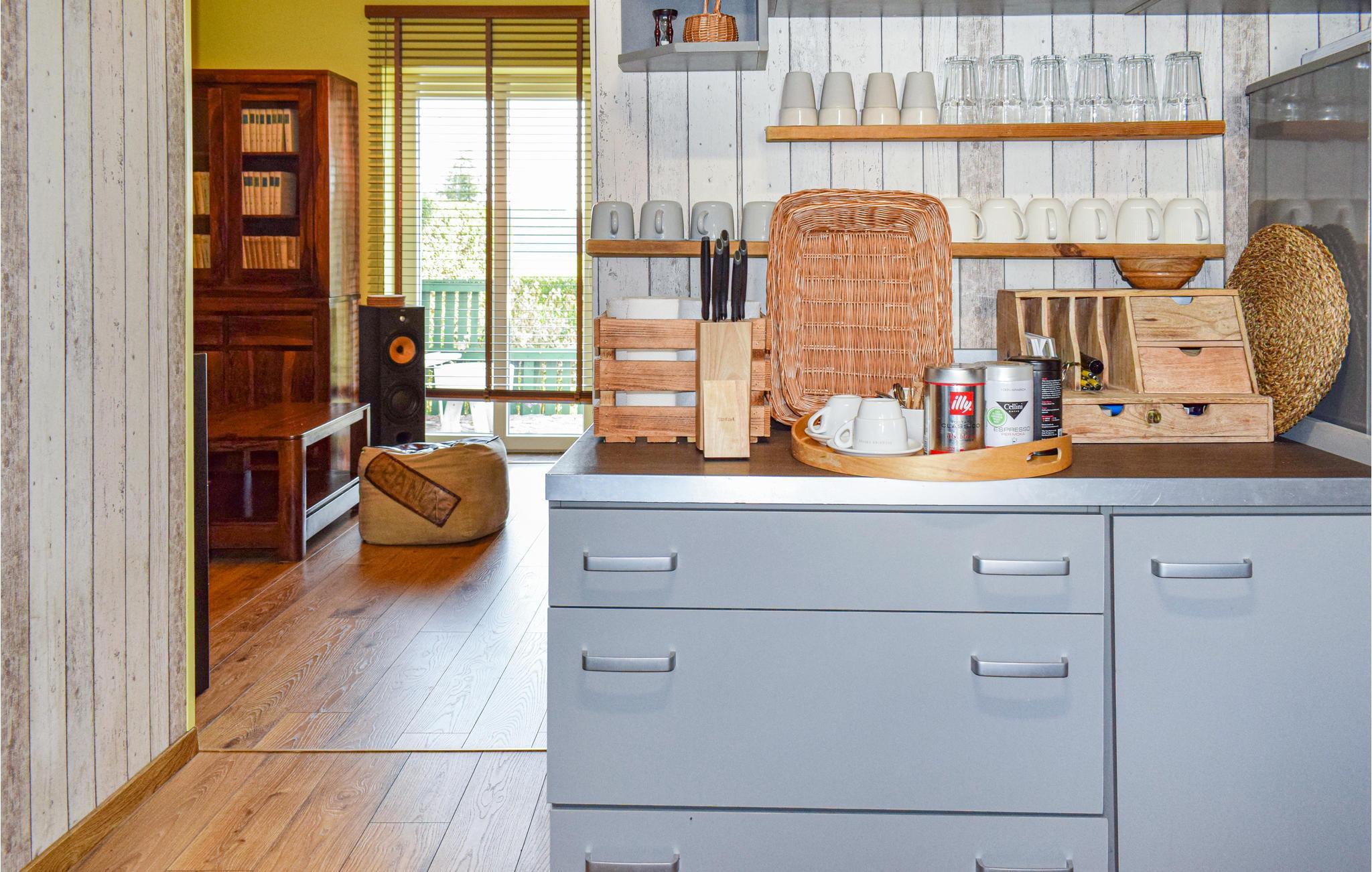 Dieses Ferienhaus begrüßt Sie mit einem gemütlich eingerichteten Innenbereich. Zaubern Sie leckere Gerichte in der offenen Küche und nehmen Sie am rustikalen Holztisch Platz. Entfachen Sie den Kamin und genießen Sie das behagliche Ambiente auf den stilvollen Sitzmöbeln. Wenn Sie möchten, machen Sie es sich im kleinen, separaten Häuschen bequem, nutzen das zweite gemütliche Wohnzimmer oder entspannen bei einem Glas Wein auf der teilweise verglasten Terrasse.