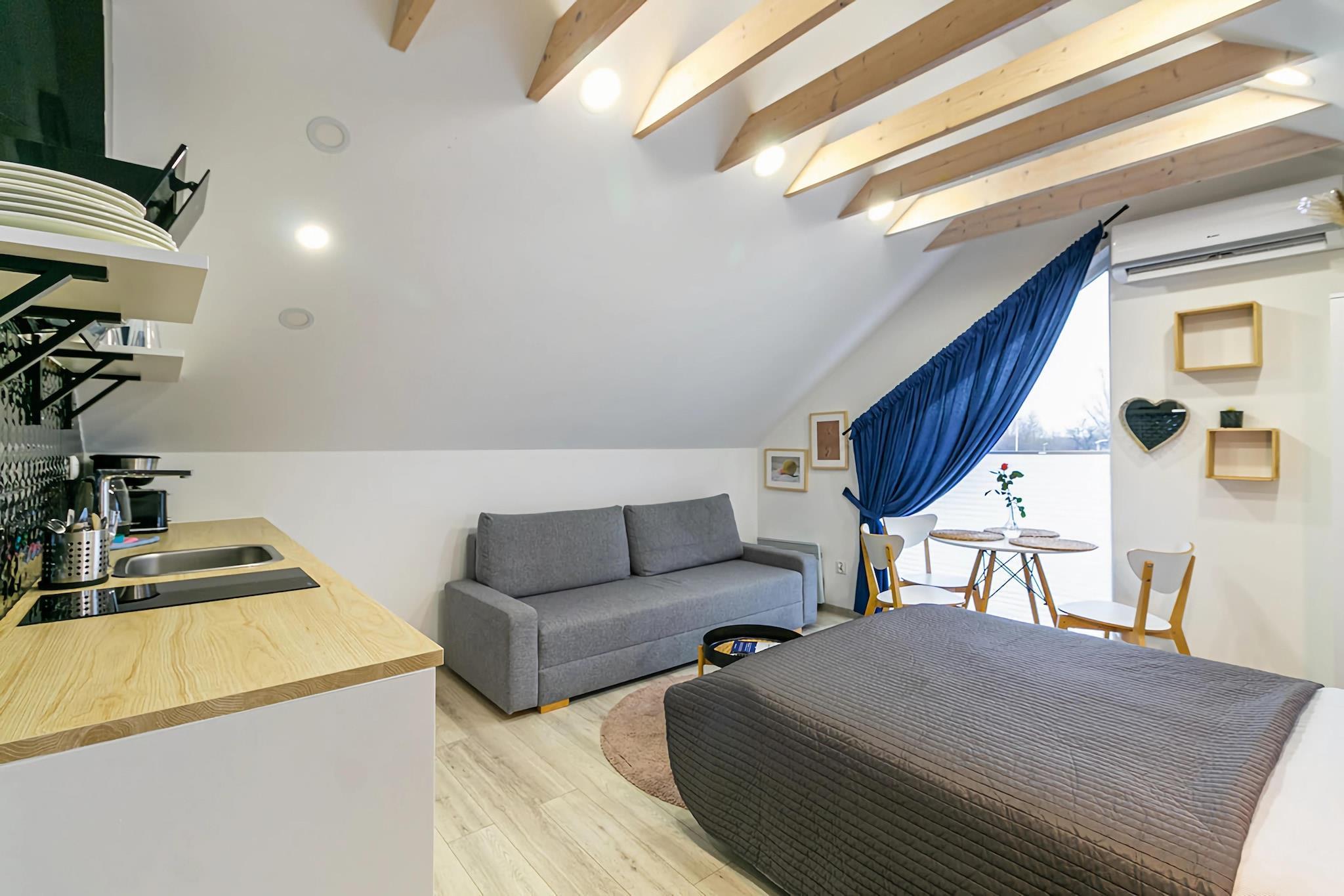 Ferienresort mit attraktiver Infrastruktur (u.a. Schwimmbad, Sauna, Whirlpool), 700 m vom Strand entfernt. Gemütliche Wohnung im 1. OG. Das Wohnzimmer ist nicht nur ein Schlafzimmer (Doppelbett + Ausziehcouch), sondern verfügt auch über einen Tisch und einen Fernseher. Offene Küche, gut ausgestattet. Badezimmer mit Dusche. Es gibt eine Klimaanlage und eine Fußbodenheizung. Es gibt eine Terrasse mit Gartenmöbeln und einem Elektrogrill. WLAN ist verfügbar. Das Resort verfügt über einen Außenpool mit beheiztem Wasser (vom 01.05 bis 30.09), eine Sauna (tägliche Sitzungen von 18:00 bis 20:00 Uhr im Aufenthaltspreis inbegriffen; private Sitzungen gegen Aufpreis), einen Whirlpool (gegen Aufpreis). ), Wellnessbereich (Massagen, Beautybehandlungen), Fahrrad- und Quadverleih, Outdoor-Fitnessstudio und Volleyballplatz. Im Garten gibt es Hängematten, Gartenpavillons, einen Teich mit Angelmöglichkeiten, einen attraktiven Spielplatz und einen Mini-Zoo. Es gibt sichere Parkplätze (gegen Aufpreis). Vor Ort gibt es ein Restaurant (im Sommer), in dem Sie ein Frühstücksbuffet und Mittagsgerichte bestellen können. Außerdem gibt es ein Café und eine Cocktailbar. Im Preis Ihres Aufenthaltes sind enthalten: Bettwäsche, Wasserverbrauch, Klimaanlage, Nutzung des Sommerschwimmbades (von Mai bis Ende September), tägliche Saunagänge (von 18:00 bis 20:00 Uhr), Internet. Niechorze ist ein Ferienort in der Woiwodschaft Westpommern. Sie liegt an der Küste der Ostsee und ist das Zentrum der malerischen Rewal-Küste. Niechorze bietet Touristen einen sauberen Strand und einen bewachten Badebereich. Hier gibt es auch eine Angelbasis, perfekt als Hintergrund für Erinnerungsfotos. Wenn Sie in der Nähe des Strandes sind, müssen Sie sich unbedingt das Wahrzeichen der Stadt ansehen. Es ist ein hoher Leuchtturm, der für Besucher geöffnet ist. Der Stolz der Stadt (und eigentlich der gesamten Region) ist die renovierte Schmalspurbahn.