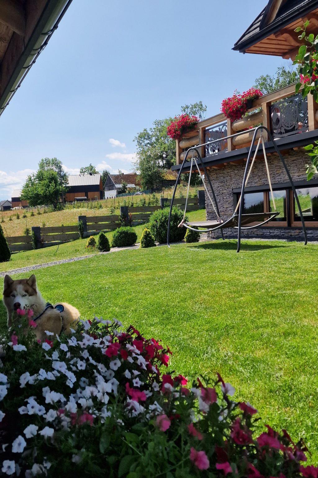 Von der Terrasse aus hat man einen wunderschönen Blick auf die Tatra und die Gorce. Am Abend genießen wir den Blick auf das beleuchtete Nowy Targ und die umliegenden Städte. Direkt neben dem Grundstück führt ein Wanderweg zur Schutzhütte "Koliba" auf Lapsowa Polana und weiter nach Bukowina Obidowska oder Turbacz (dem höchsten Gipfel der Gorce).