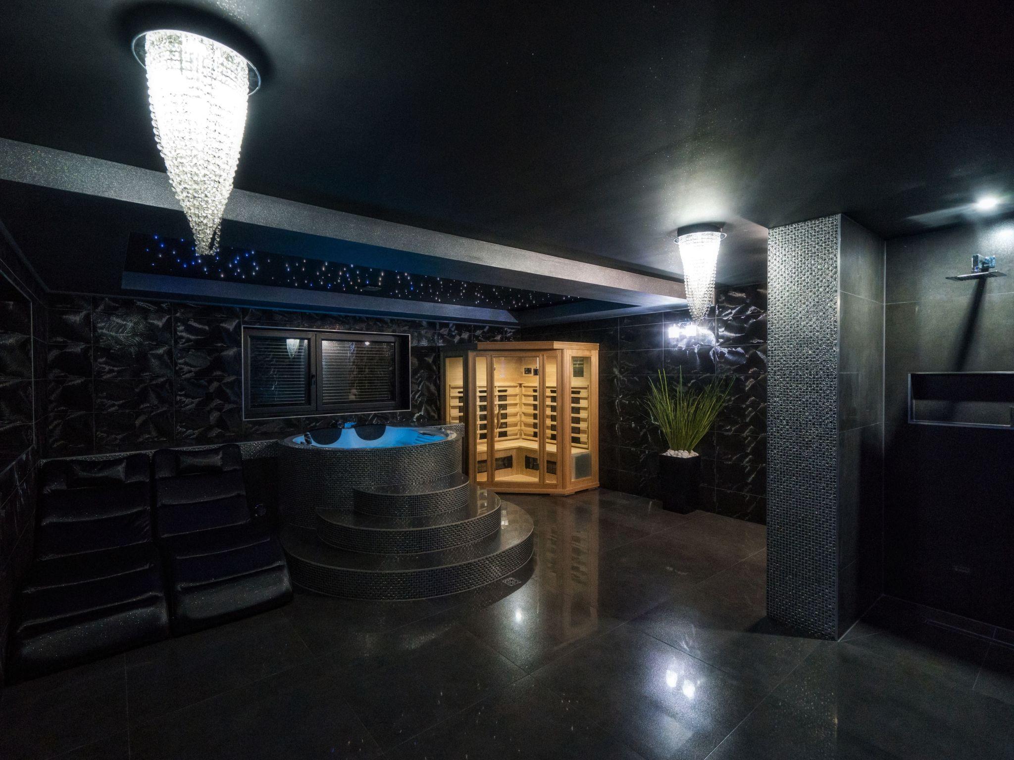 Das Haus verfügt auch über einen Entspannungsraum (unterirdisch) mit Infrarotsauna, Jacuzzi, TV und Dusche.