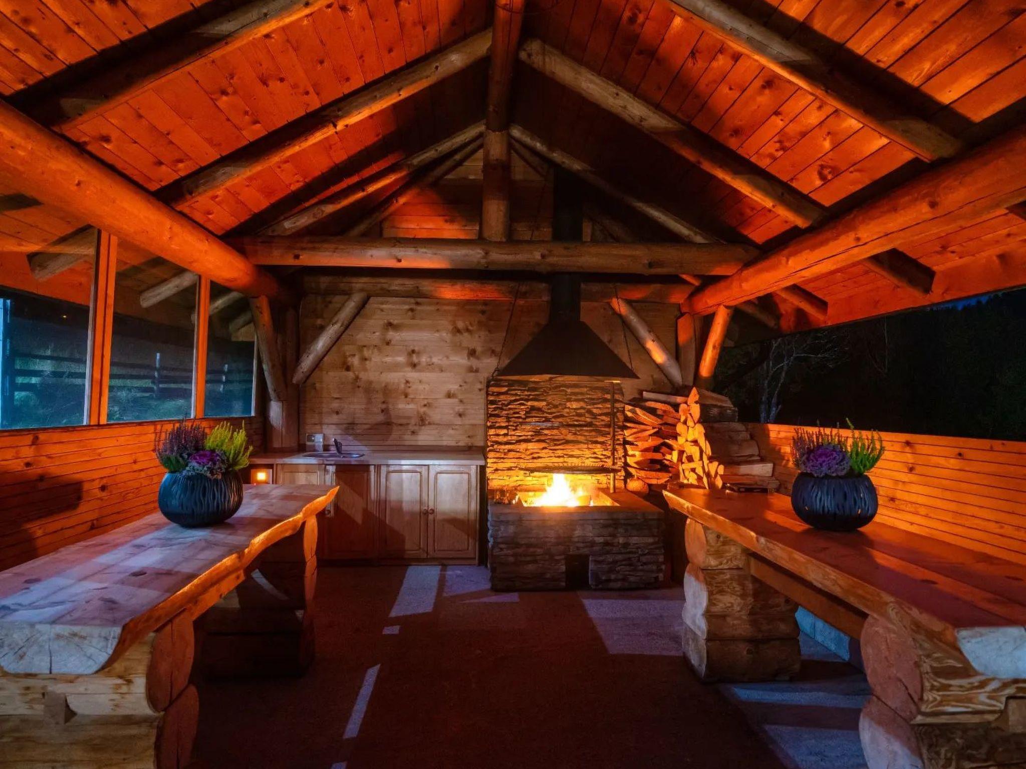 Im Garten steht den Gästen ein großer hölzerner Pavillon zur Verfügung, der ideal für abendliche Feste am Feuer ist: