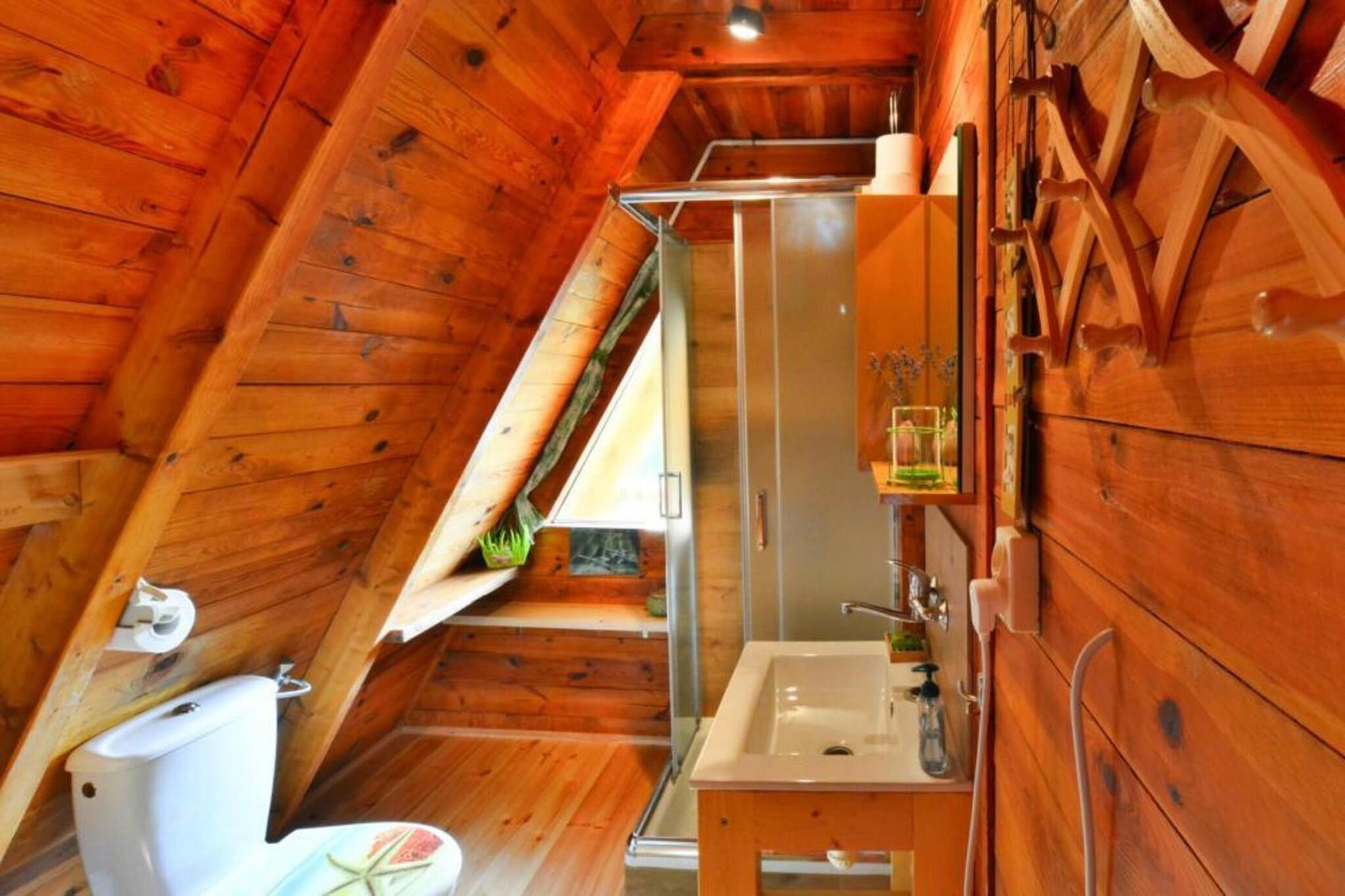 Parterre: (Kochnische(Kochplatte(2 Kochplatten, elektrisch), Wasserkocher, Toaster, Kaffeemaschine, Mikrowelle, Kühl-/Gefrierkombination), Wohn/Esszimmer(20 m2)(Doppelschlafcouch, TV(Flatscreen, Satellit, Deutsch Fernsehsender), Esstisch), Schlafzimmer(Doppelbett), Badezimmer(Dusche, Waschbecken, Toilette)) In der 1. Etage: (Galerieschlafzimmer(4x Einzelbett)) Internet, Liegewiese, Balkon, Heizung(elektrisch), Terrasse, Garten(Gemeinschaftliche Nutzung mit anderen Gästen, umzäunt), Gartenmöbel, Grill(Holzkohle), Parkplatz, Spielgeräte, Hochstuhl, Babybett (kostenpflichtig)