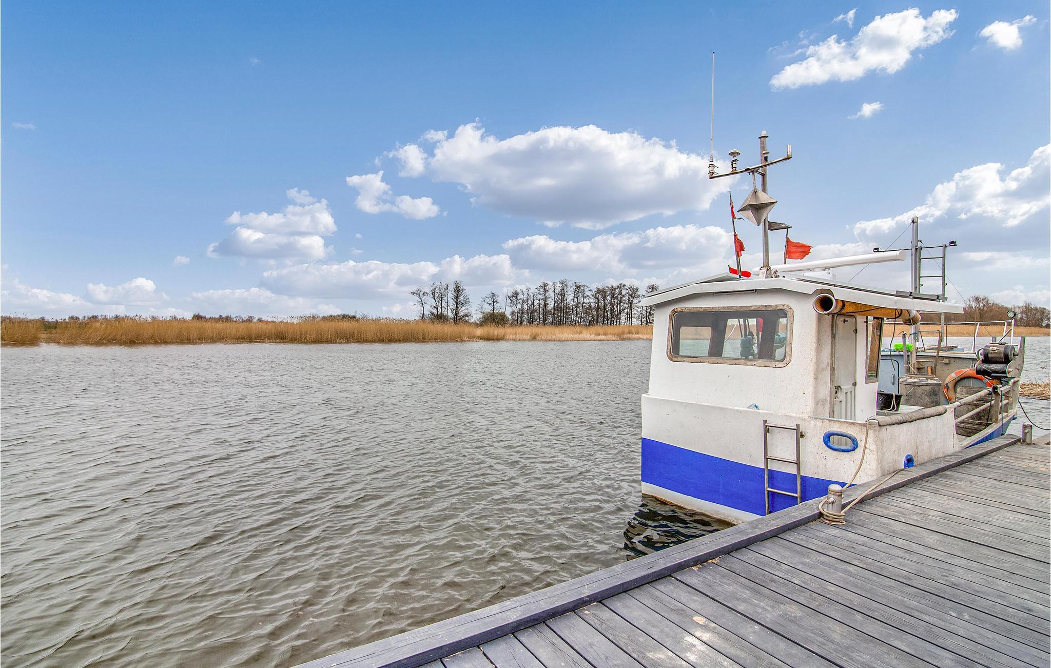 Das Haus befindet sich auf dem Grundstück mit sechs weiteren Ferienhäusern. Im Erdgeschoss gibt es ein Wohnzimmer mit TV, eine Kochnische, ein Esszimmer und ein Badezimmer mit Duschkabine. An kühlen Tagen verbreitet der Kamin Wärme und Gemütlichkeit.