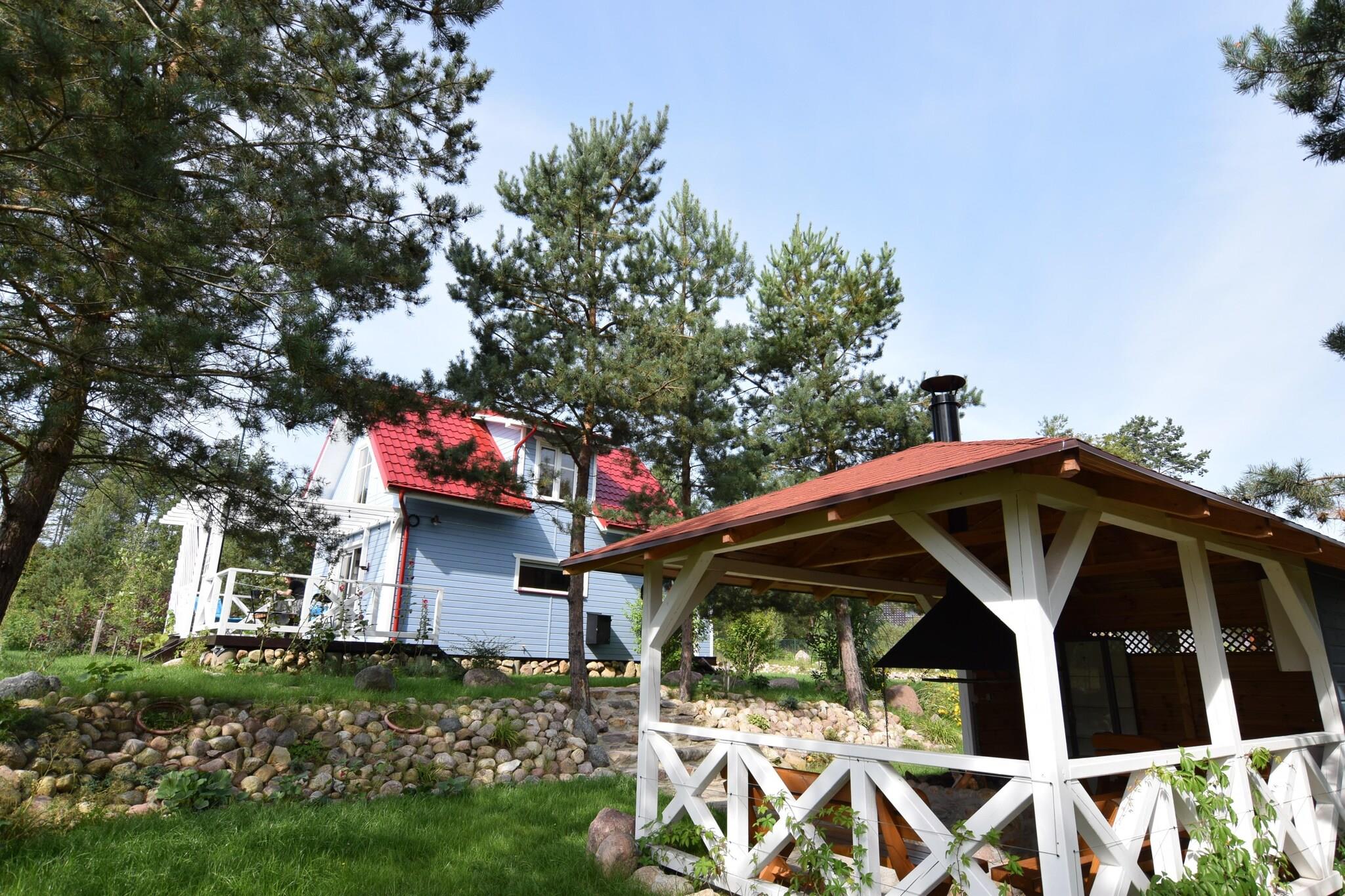 Dieses Ferienhaus in ruhiger Lage verzubert durch ein einmaliges Flair. Großzügige Terrasse und Sommerküche mit Grill in einer großen Laube im Garten. Vom 1 Stockwerk blicken Sie auf das lichtdurchflutete Wohnzimmer. Eine Sauna steht den Gästen gegen Gebühr zur Verfügung. Der große, klare See Mausz ist nur ca. 150 m vom Haus entfernt und zum sauberen Strand mit Steeg sind es nur ca. 250 m. Familien mit Kindern und Haustieren sowie Angler verbringen hier einen unvergessenen Urlaub. Wer gerne aktiv ist, kann mit dem Kajak/Kanu (gegen Gebühr vor Ort zu mieten) oder Fahrrad die Gegend erkunden. Auf dem Fluss Slupia werden organisierte Kajaktouren (auch für Anfänger) angeboten. Von hier aus erkunden Sie nicht nur die umliegende Kaschubische Schweiz, sondern auch Bytow mit Kreuzritterburg oder Gdansk und Marienburg.