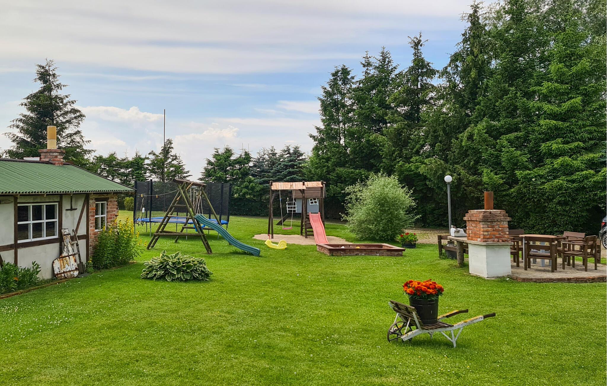 Auf dem großzügigen Grundstück gibt es viel Platz zum Spielen und Entspannen. Sehen Sie Ihren Kindern beim Buddeln und Schaukeln zu und lassen Sie einen wunderbaren Urlaubstag mit einem leckeren Essen vom Grill ausklingen.