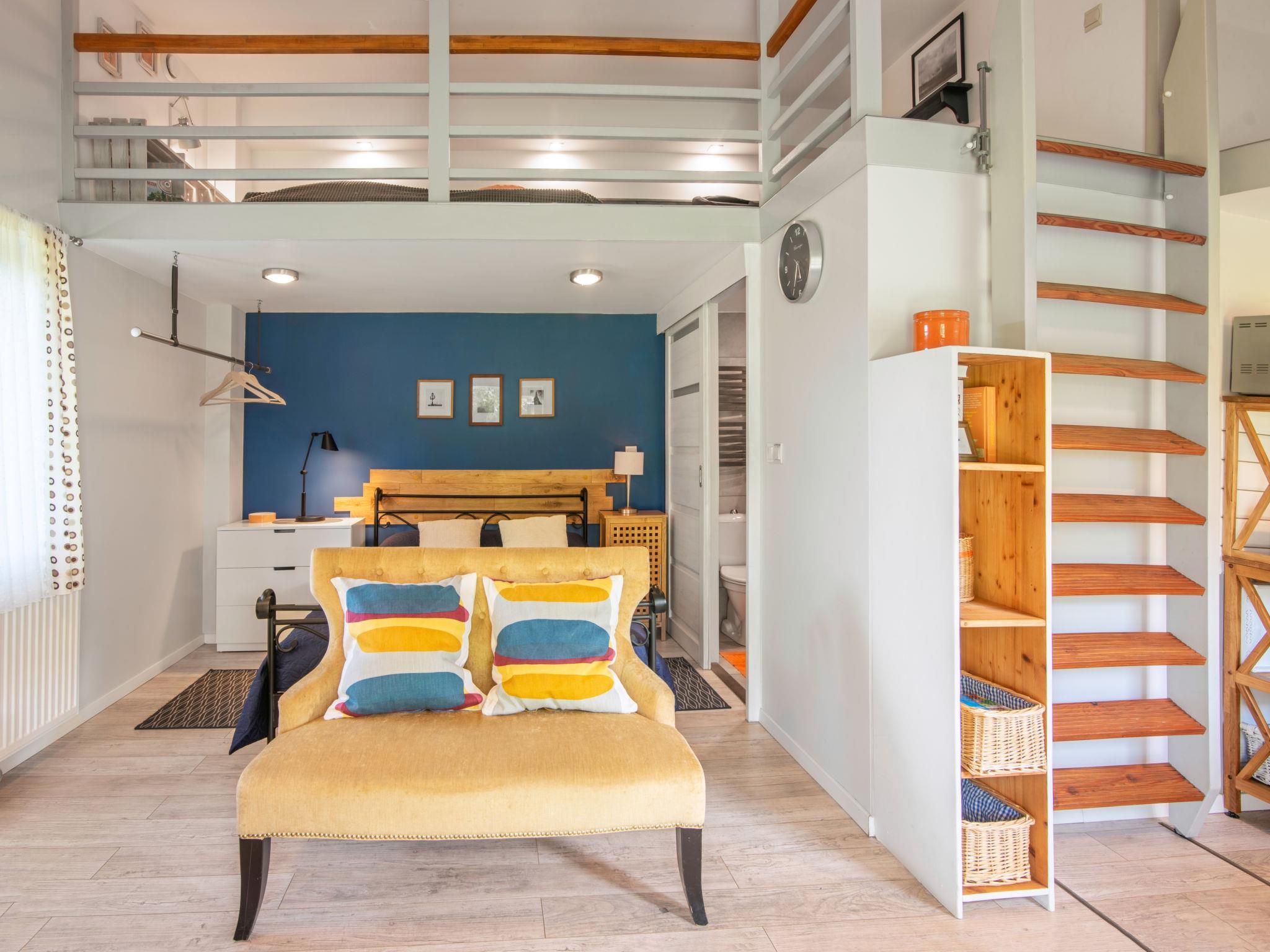 1-Zimmer-Wohnung 44 m2 auf 2 Stockwerken, im Erdgeschoss. Offenes Wohn-/Schlafzimmer mit 1 Doppelbett (140 cm, Länge 200 cm), TV. Galerie mit 2 Schlafmöglichkeiten (80 cm, Länge 200 cm). Offene Küche (2 Kochplatten, Mikrowelle, Tiefkühler). Dusche/WC. Heizung, E-Heizung, Boiler (50 Liter). Balkonmöbel, Liegestühle (2). Zur Verfügung: Internet (WLAN). Bitte beachten: eigener Eingang, Rauchmelder. Anstelle eines abgeschlossenen Schlafzimmers befinden sich manche Schlafplätze in einem offenen Bereich (Galerie, Nische etc.).