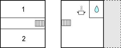 Badezimmer 5m2 (nr. 1) - WC. Warmes und kaltes Wasser. Dusche
