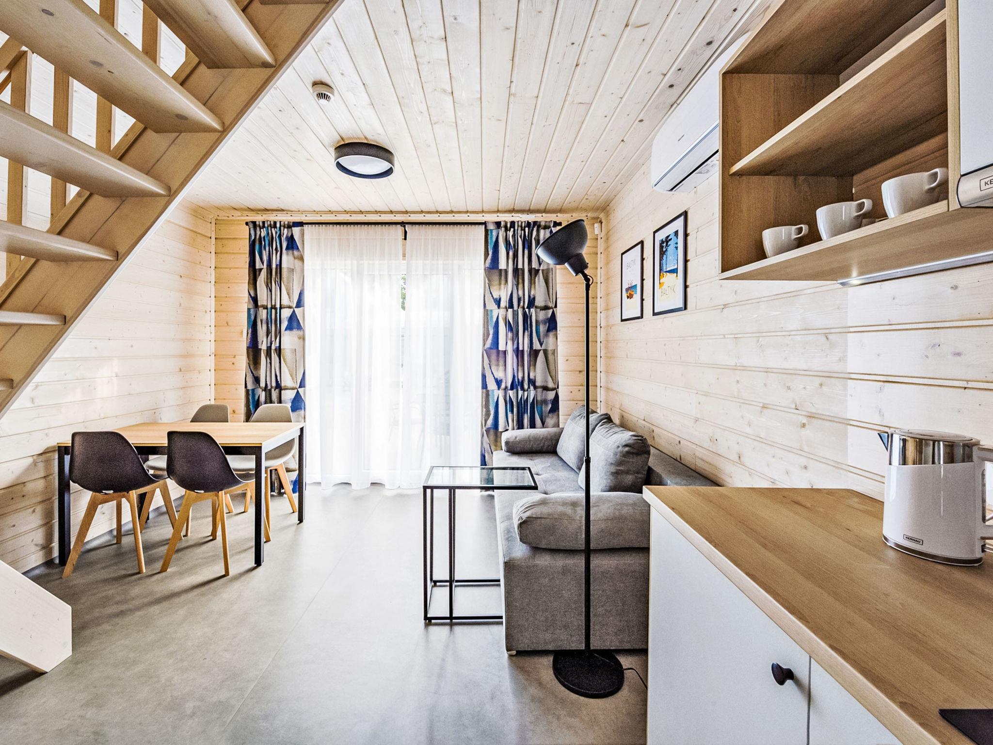 "Premium", 3-Zimmer-Haus 35 m2. Komfortabel und gemütlich eingerichtet: Wohn-/Esszimmer mit 1 Diwanbett und Kabel-TV. Ausgang zum Garten, zur Terrasse. Offene Küche (2 Glaskeramikplatten) mit Esstisch. Dusche/WC. Heizung, E-Heizung. Obergeschoss: 1 Zimmer mit 1 franz. Bett (160 cm, Länge 200 cm). 1 Zimmer mit 2 Betten. Terrasse 12 m2. Terrassenmöbel, Liegestühle (2). Zur Verfügung: Waschmaschine, Haartrockner. Internet (WLAN). Parkplatz beim Haus. Bei Häusern in unmittelbarer Nähe zum Schwimmbadbereich ist der Eintritt in den SPA-Bereich bei einem Aufenthalt von 7 Tagen zweimal wöchentlich frei.