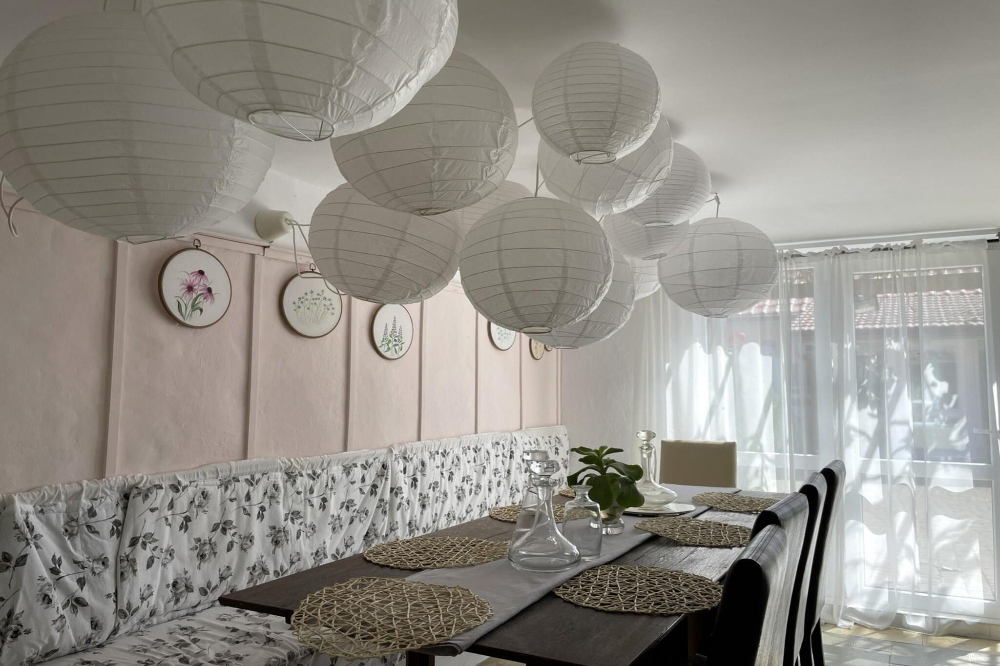 Ein Schwimmbad mit Dach, eine riesige Fläche des Grundstücks, ein Gartenhaus, die Möglichkeit, hausgemachtes Frühstück zu bestellen
