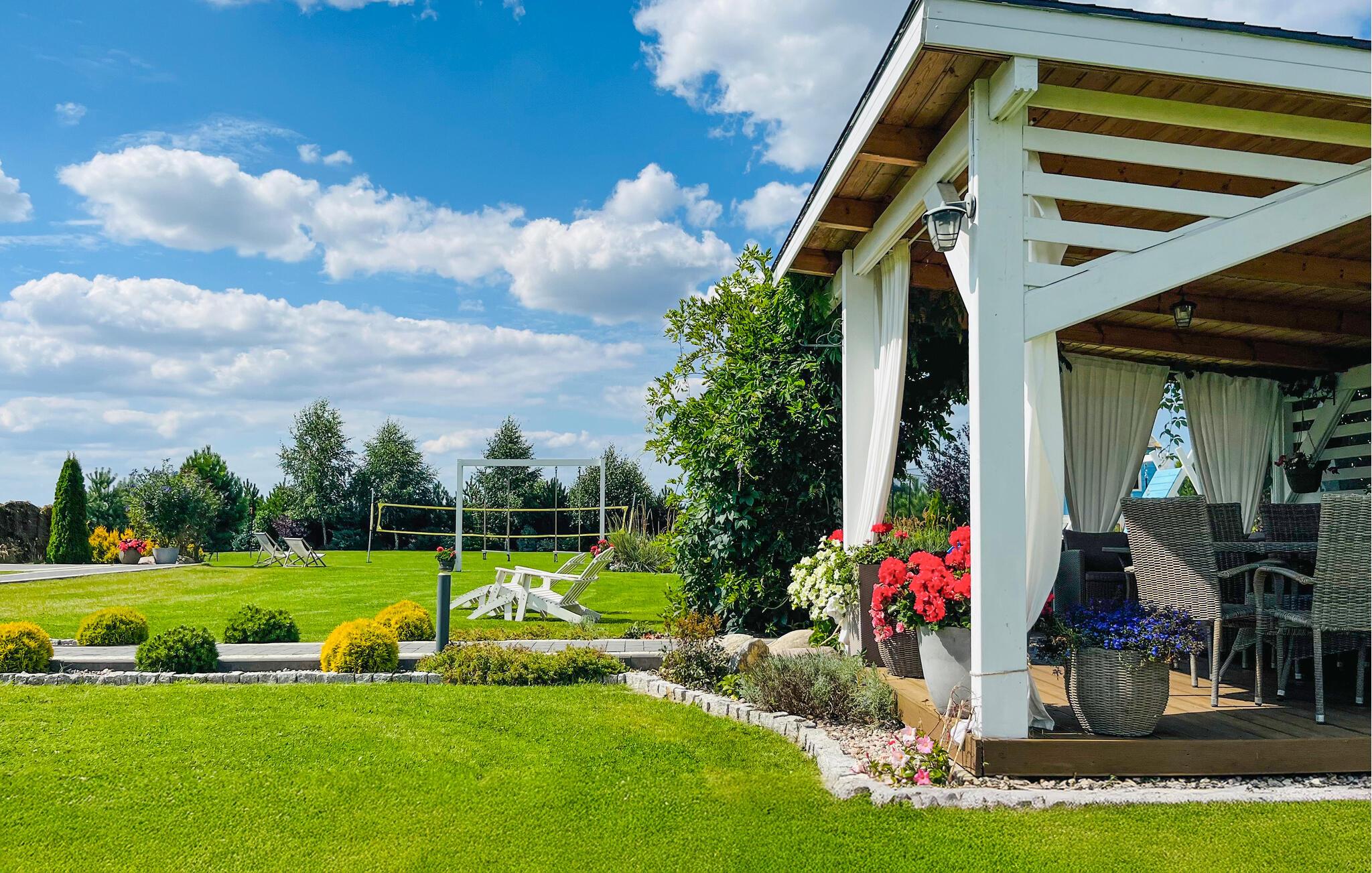 Genießen Sie die ersten Sonnenstrahlen bei einem ausgiebigen Frühstück auf Ihrer Veranda. Lassen Sie Ihre Kinder die zahlreichen Spielmöglichkeiten auf dem gemeinschaftlichen Grundstück nutzen und neue Freundschaften knüpfen, während Sie sich in der Hängematte entspannen oder einen stimmungsvollen Grillabend vorbereiten.