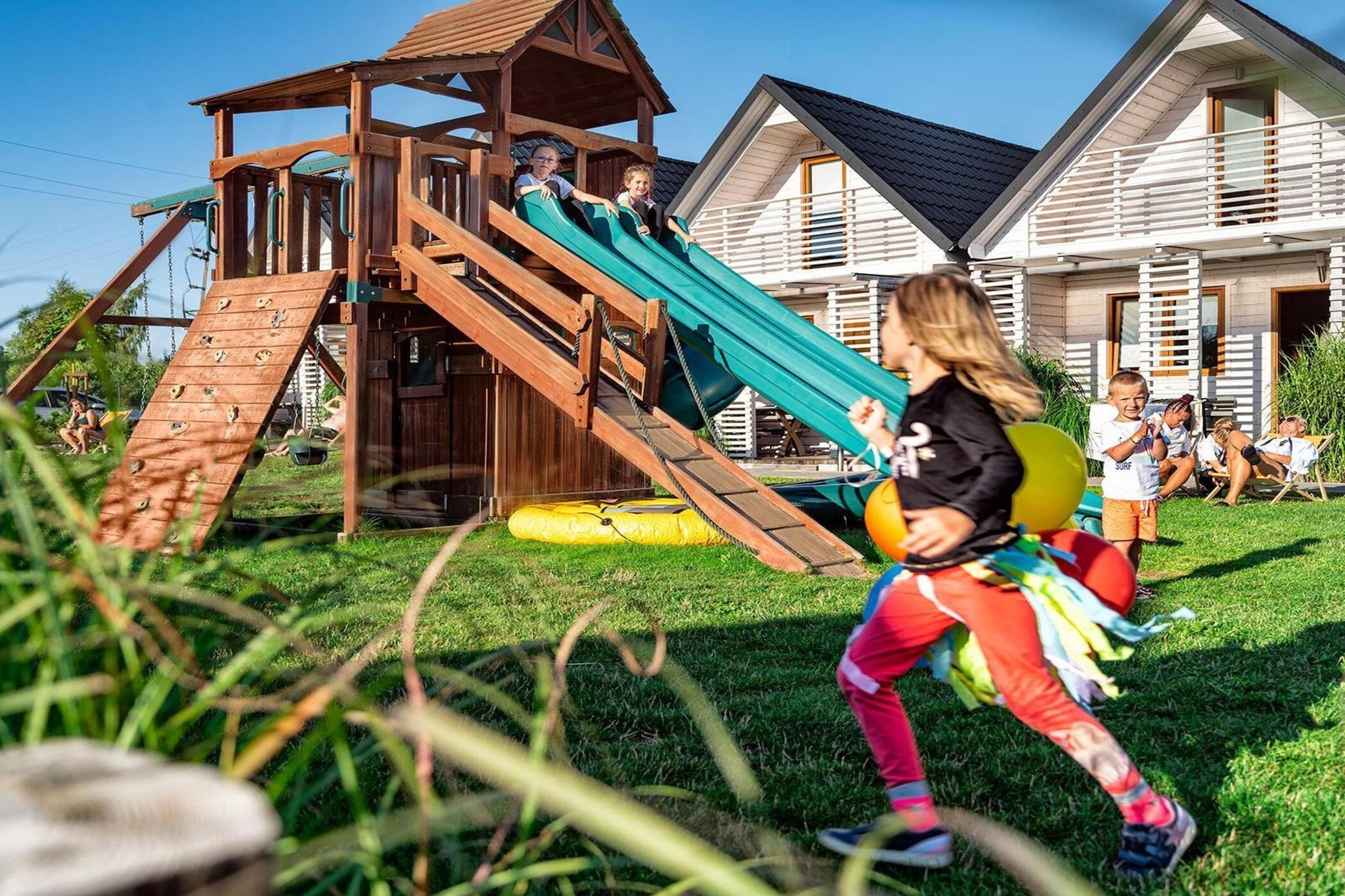 Dieses Familienferienresort in Sarbinowo bietet hochwertige, zweistöckige Häuser in einem sicheren, umzäunten Bereich, nur 350 m vom Strand entfernt. Jedes Haus verfügt über ein Wohnzimmer mit TV, Doppelschlafsofa, Esstisch, Küche, Badezimmer mit Dusche und zwei Schlafzimmer im Obergeschoss (eines davon mit Balkon). Überdachte Terrassen mit Gartenmöbeln, Elektroheizung und WLAN runden die Unterkunft ab. Das Resort verfügt über einen Wasserattraktionskomplex (01.06.–14.09.) mit einem Pool, zwei Rutschen und einem Whirlpool sowie Spielplätze, ein Spielzimmer, Sportplätze, Grillplätze, eine Snackbar und sichere Parkplätze. Vom 08.06. bis 06.09. können Kinder ein ganztägiges Unterhaltungsprogramm genießen. Bettwäsche, Wasser, Internet, Zugang zu den Wasserattraktionen und Parkplätze sind im Preis inbegriffen; Babybett, Hochstuhl und Badewanne sind auf Anfrage erhältlich. Sarbinowo ist ein charmanter Sommerferienort an der Westküste mit sauberen, breiten Stränden, ideal für Familienausflüge. Zu den Sehenswürdigkeiten in der Nähe zählen das Museum des Fischerdorfes in Chlopy, der Pomerania Fun Park und der internationale R-10-Radweg rund um die Ostsee.