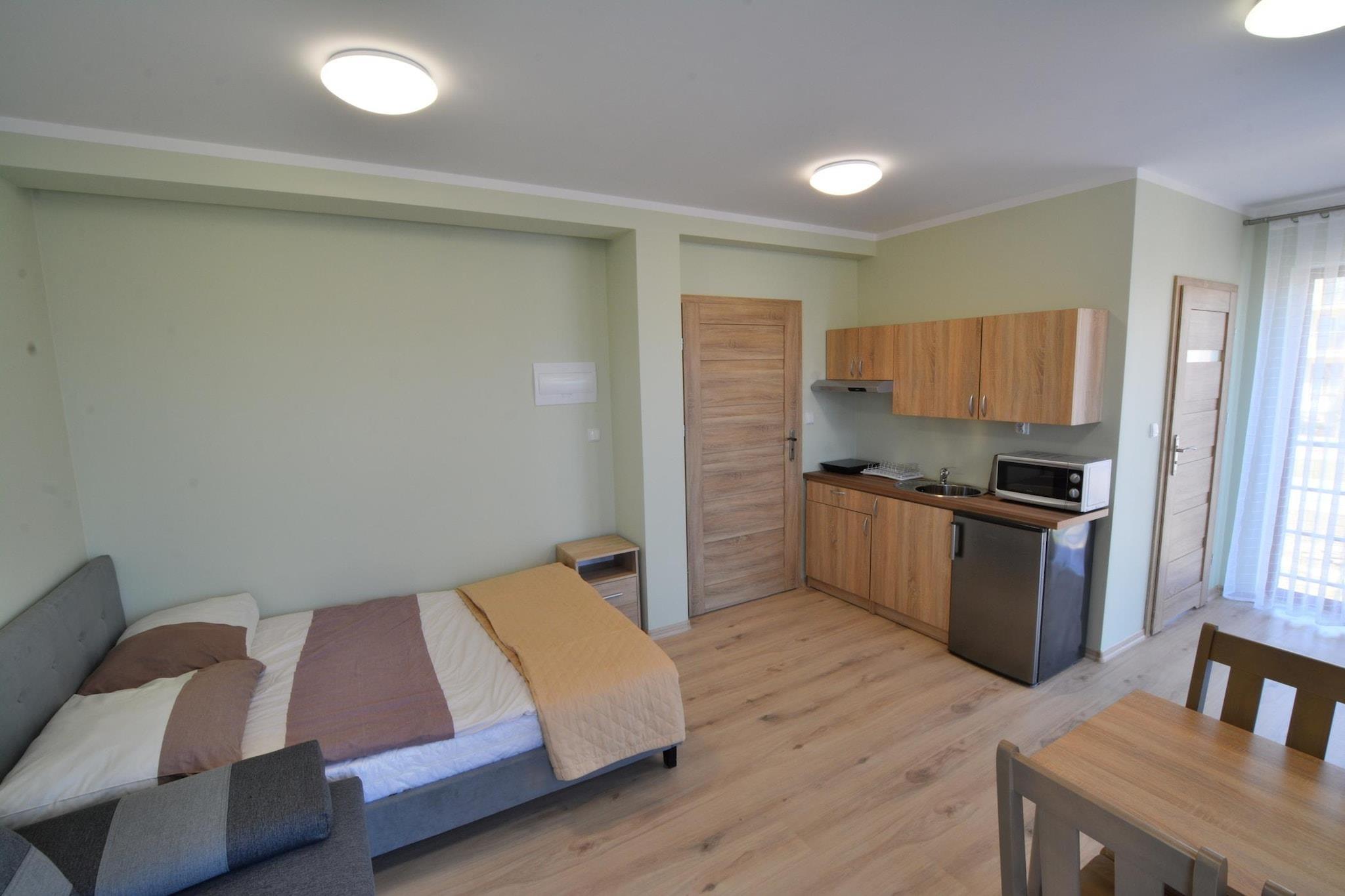 Im Herzen einer wunderschönen Küstenstadt befindet sich ein Familienferienort mit Unterkunft in Apartments. Zum Meer sind es nur 300 m. Im Umkreis von wenigen Schritten finden Sie zahlreiche Restaurants, Cafés und Souvenirstände. Schönes 3-Personen-Studio mit Kochnische im ersten Stock. Es ist ein Raum, der sowohl als Schlafzimmer als auch als Wohnzimmer dient. Es gibt ein gemütliches Doppelbett und ein zusätzliches ausklappbares Sofa. Es gibt einen Tisch mit Stühlen und einen Fernseher. Das Zimmer verfügt über einen Balkon. Badezimmer mit Dusche. Zentralheizung. Zur Anlage gehören ein Parkplatz, Grillmöglichkeiten, ein Spielplatz für Kinder und eine Tischtennisplatte. Im Preis Ihres Aufenthalts sind inbegriffen: Bettwäsche, Strom- und Wasserverbrauch, Endreinigung, Parkplatz und ein Babybett (vorherige Buchung erforderlich). Sarbinowo ist ein kleiner, malerisch gelegener Sommerferienort an der Westküste, wenige Kilometer westlich von Mielno. Hier erwarten Sie saubere, breite Strände. Dies ist der perfekte Ort für einen Kurzurlaub mit Familie oder Freunden. In unmittelbarer Nähe lohnt sich ein Besuch des Fischerdorfmuseums in Chlopy. Für Familien mit Kindern ist der Pomerania FunPark ein tolles Ziel für einen Tagesausflug. Der internationale Radweg R-10 rund um das Ostseebecken verläuft ganz in der Nähe des Zentrums. Wir empfehlen Ausflüge ins malerische Chlopy, ins Zentrum von Sarbinowo, zum Leuchtturm in Gaski und nach Ustronie Morskie.