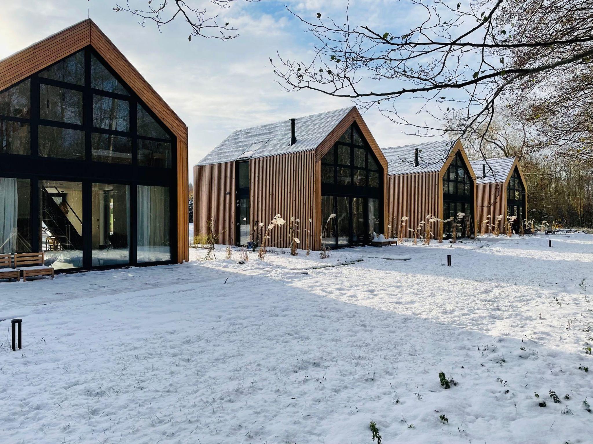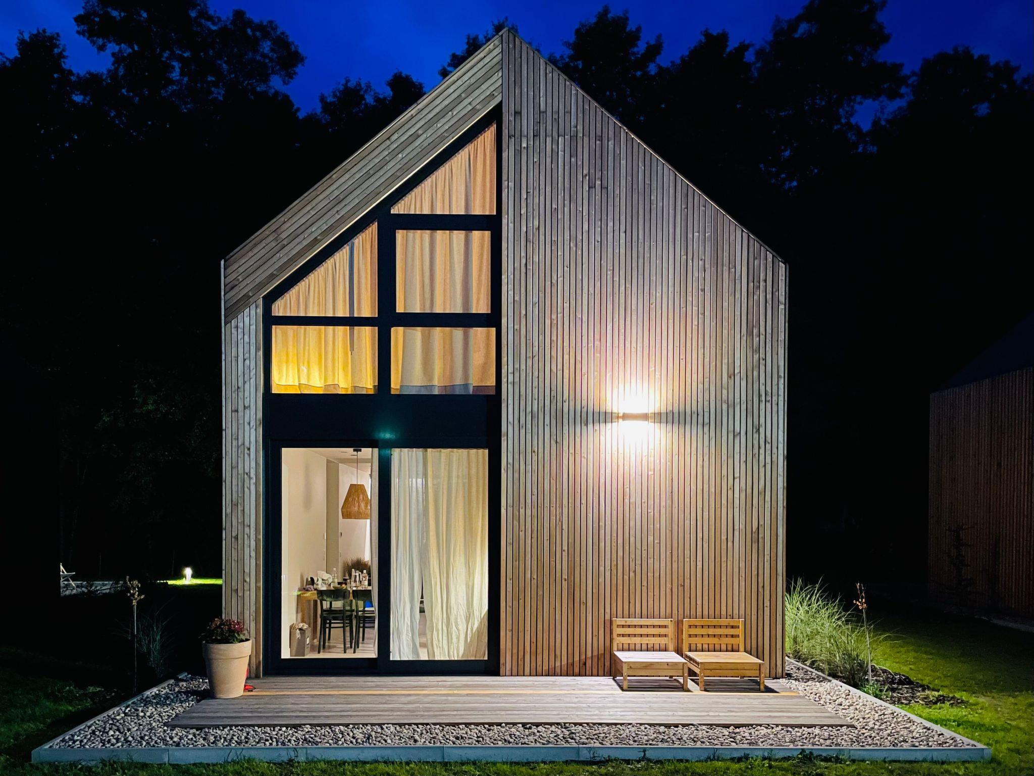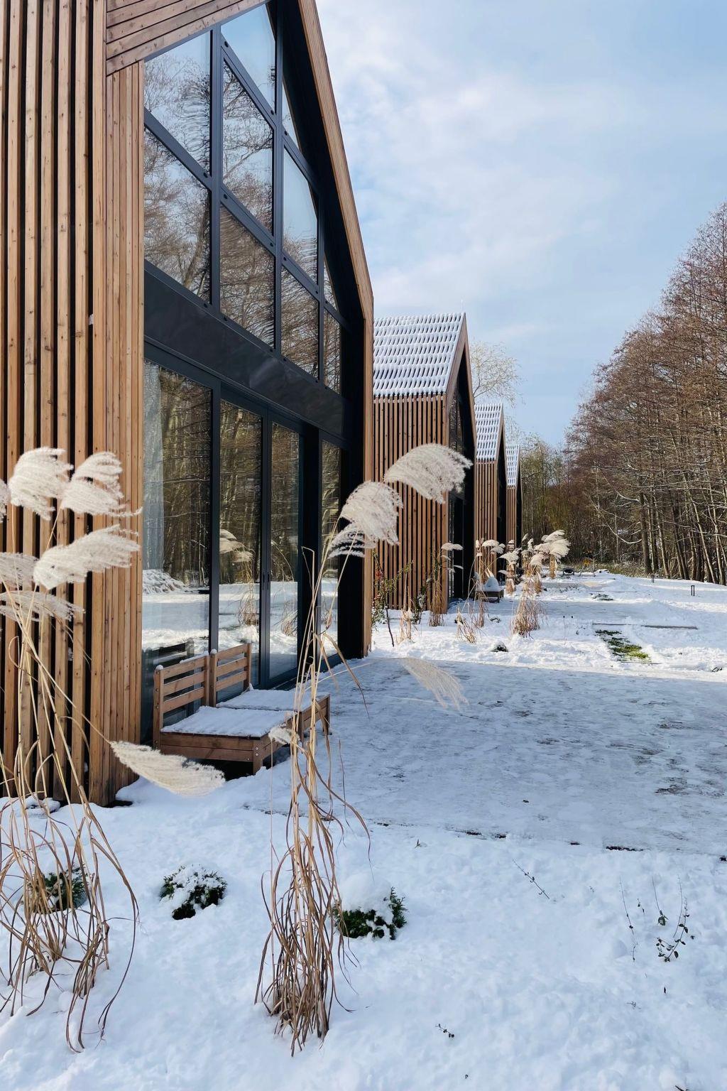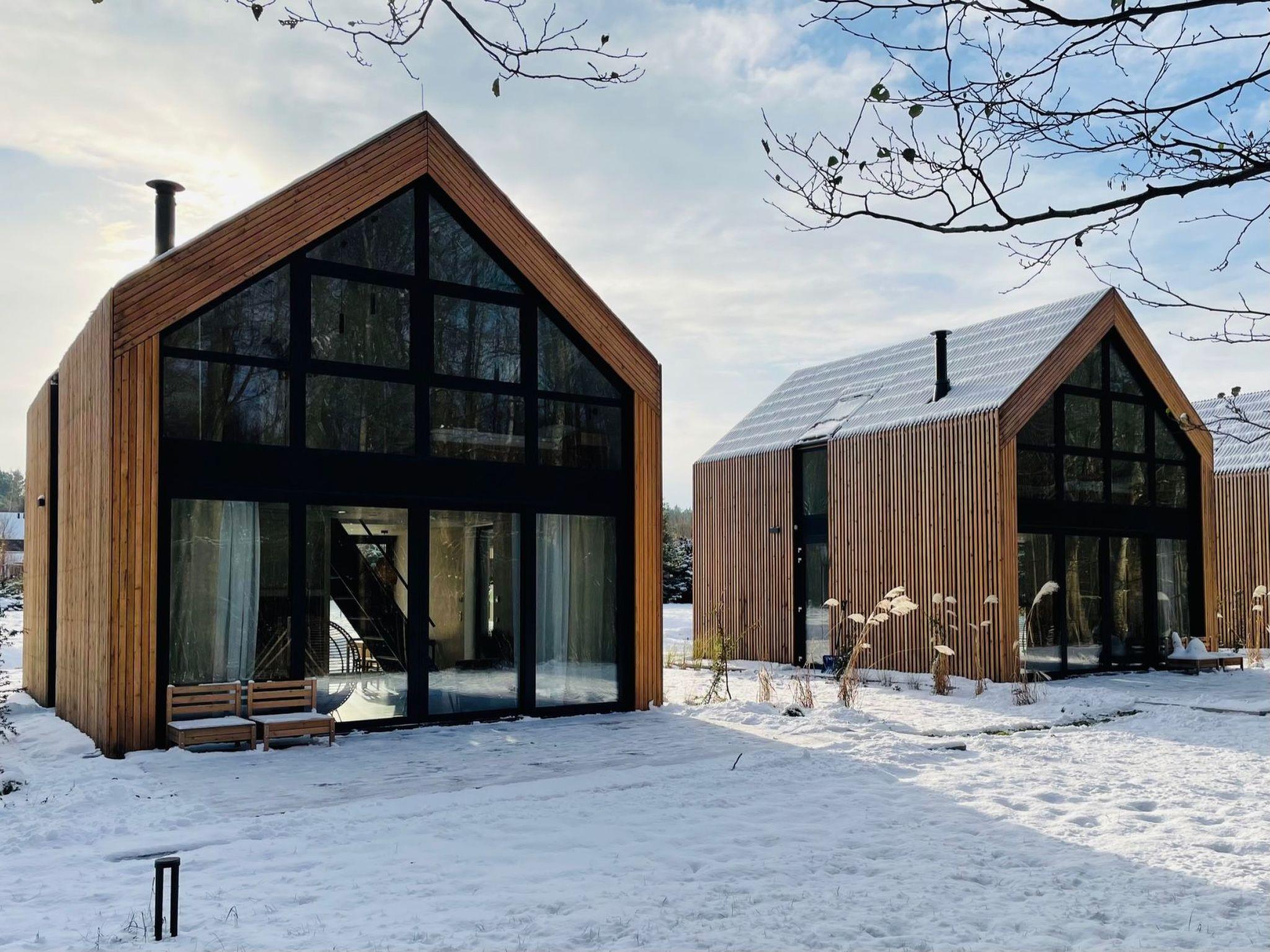 Unser Angebot umfasst 4 intim gelegene, luxuriöse Häuser aus hochwertigen Naturmaterialien in Holzrahmenbauweise mit Panorama-Aluminiumfenstern mit Blick auf die Waldwand und den Bach. Die Siedlung befindet sich nur 2,5 km vom schönsten Sandstrand der Ostsee entfernt.