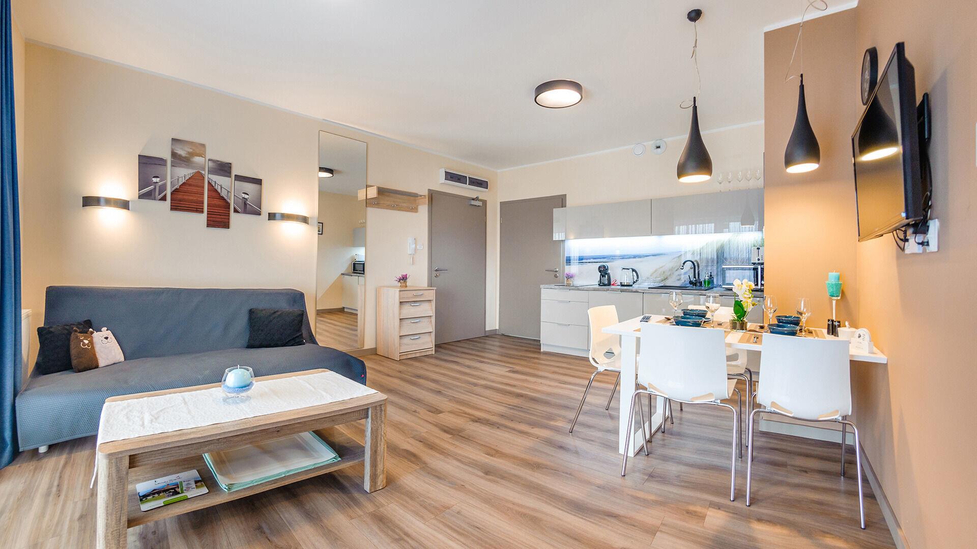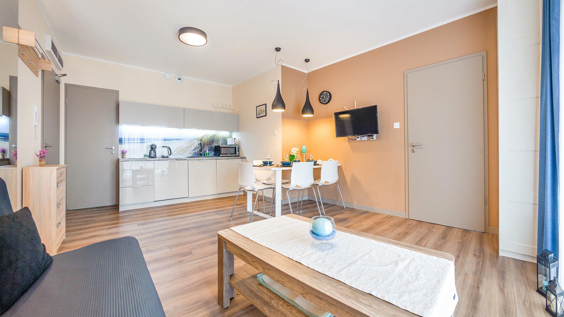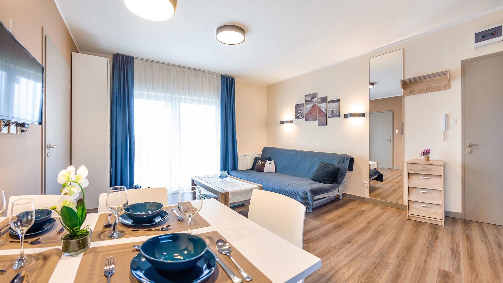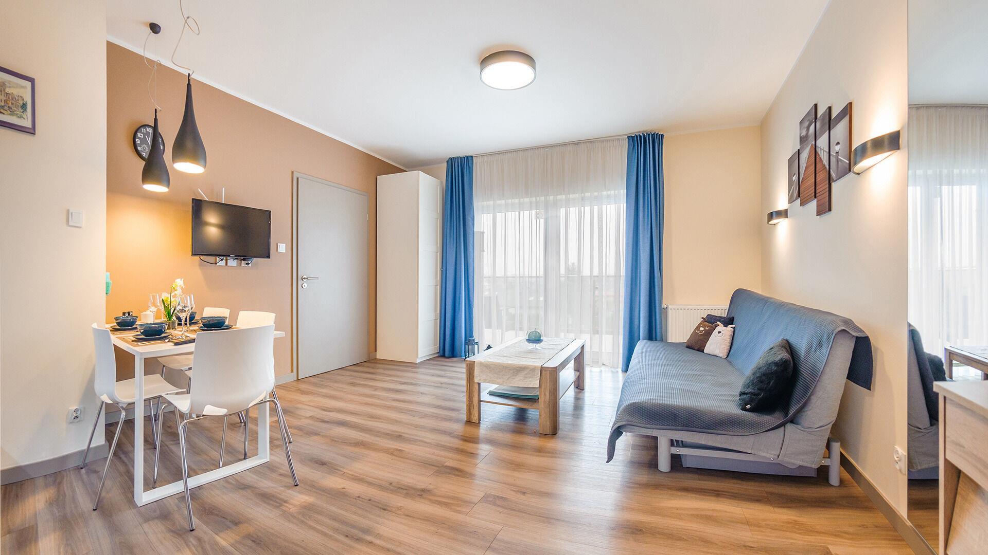 Zu den gewählten Apartments darf man mit dem Hund ankommen. Die zusätzlichen Kosten des Aufenthalts mit einem vierbeinigen Freund betragen 100 PLN (Einzelgebühr). Die Gäste, die den Aufenthalt mit dem Hund planen, bitten wir um eine frühere Kontaktaufnahme mit unserem Service im lokalen Büro.