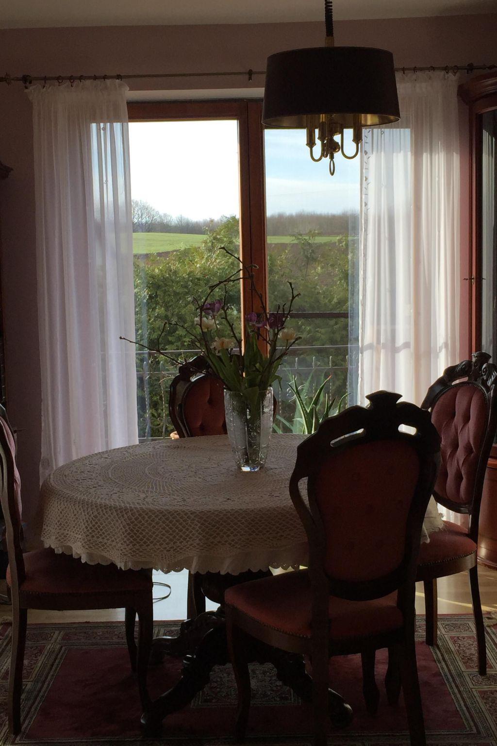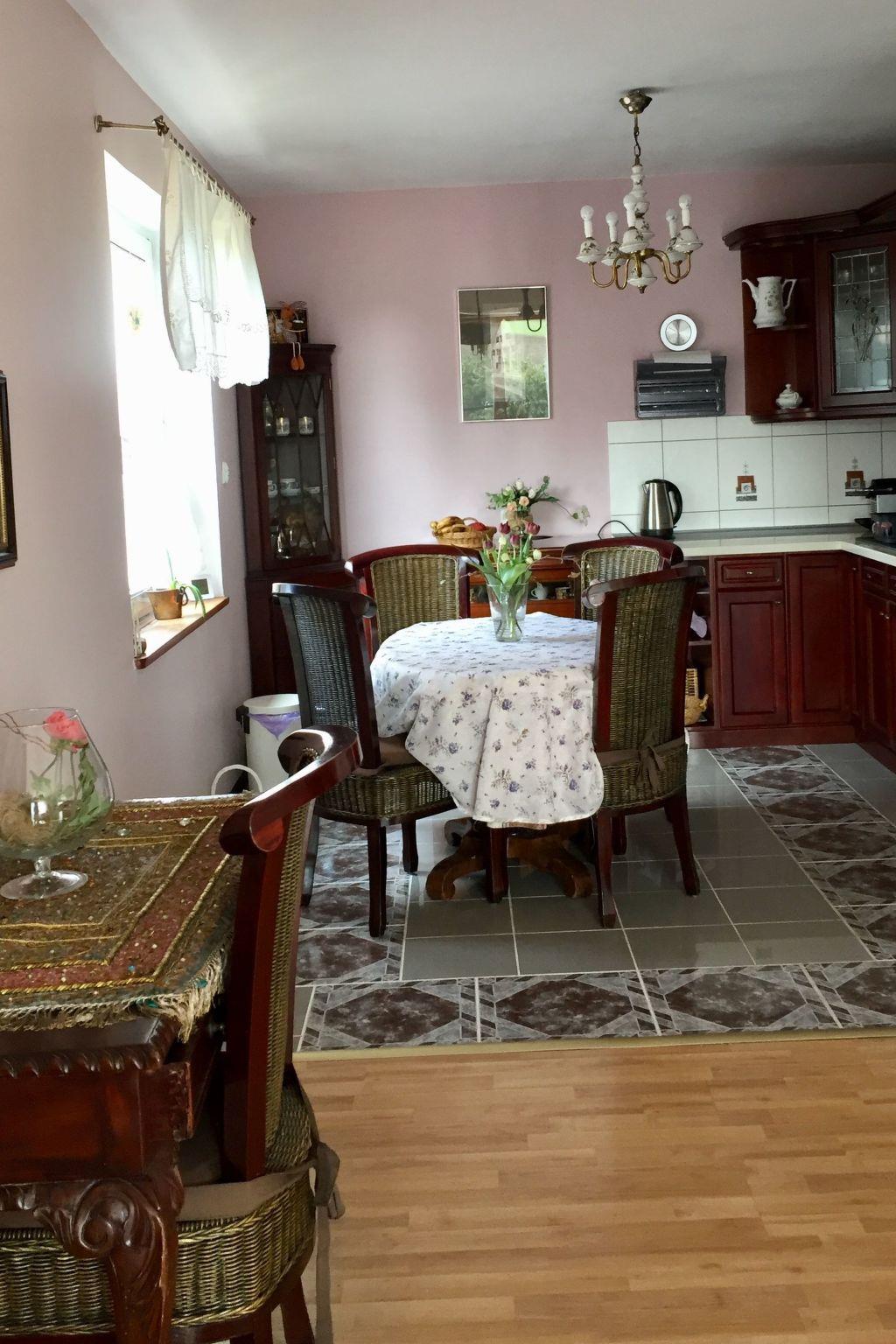 " Dieses hübsche und gut ausgestatte Ferienhaus liegt in einem Dorf, auf einem großen Grundstück nur ca. 4 km von Sierakowice ca. 30 km von Slupsk und 60 km von Danzig und Leba und 30km von Kartuzy . Es wurde sehr komfortabel und praktisch eingerichtet. Wohnzimmer,Ess-und Küchenabteilung sind architektonisch interessant miteinander verbunden. Besonders hübsch haben Sie Aussicht von der 60 qm großen Terrasse auf die Landschaft und nähe gelegenen ca 250 m See. Das Haus steht ganzjährig zur Verfügung. Damit Ihnen gemütlich warm wird, gibt es einen Kamin. In unserer finnischen Holzsauna kommen Sie richtig ins Schwitzen der Yoga-Ruheraum ca. 60 m2 sorgt für die etwas “andere” Abkühlung und lädt Sie zu entspannten Momenten ein. Hausinformation: ***** Ferienhaus mit 160 m2 . für 4-5 Personen, 1000m2 garten, Garage, offene Terrasse. Ausstattung: Kamin, 1 TV, Sat-TV deutsche Kanäle, Stereoanlage, Geschirrspüler, Kühlschrank, Kaffeemaschine, Dusche und 2 WC Küche warmes und kaltes Wasser, Gartenmöbel und Grill Räume und Aufteilung - Schlafzimmer 1: 2 Schlafplätze ( Doppelbett) - Schlafzimmer 2: 3 Schlafplätze ( Doppelbett+Einzlbett ) - Wohnraum - Küche - Toilette - WC. warmes und kaltes Wasser - Badezimmer. Warmes und kaltes Wasser, Dusche und Badewanne - Terrasse: offene Terrasse 60 m2 Entfernungen Einkaufsmöglichkeiten erste 2 km und Sierakowice 4 km Slupsk 30 km Lebork 30 km Sehenswürdigkeiten Danzig ca. 60 Km , Eba 60 Km, Szymbark 25 Km