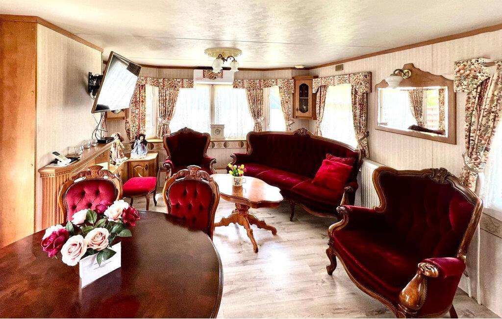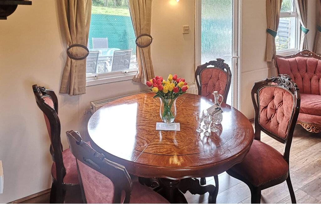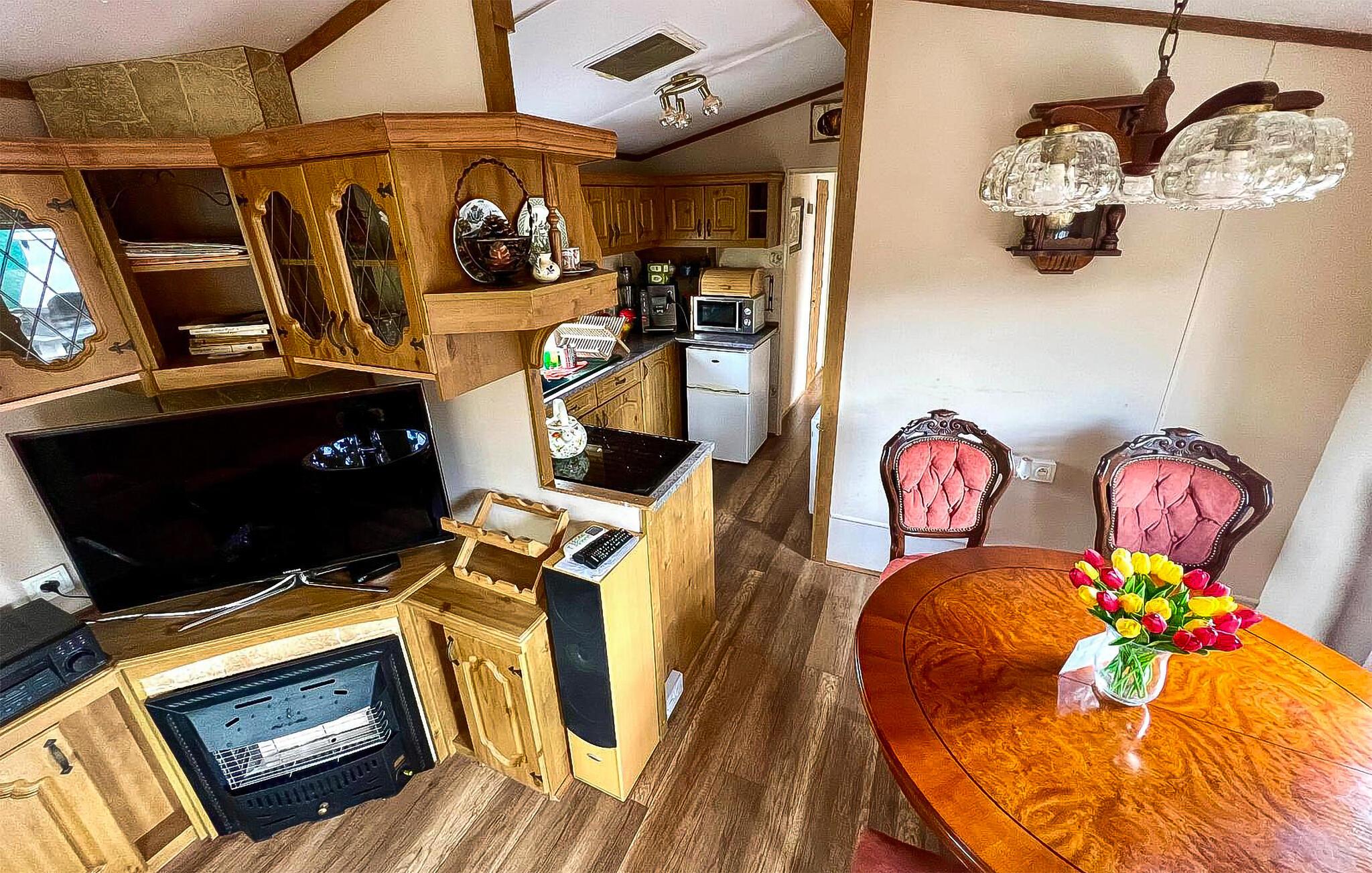 Genießen Sie Ihren Aufenthalt in diesem charmanten Ferienhaus, das Ihnen eine gelungene Kombination aus Gemütlichkeit, Ruhe und vielfältigen Freizeitmöglichkeiten bietet. Inmitten einer sanften Landschaft gelegen, lädt das Haus zu einer Auszeit in angenehmer Atmosphäre ein. Richten Sie sich im liebevoll gestalteten Innenbereich ein, der mit antik anmutenden Sitzmöbeln, verspielten Dekorationen und wohnlichem Flair überzeugt. Treffen Sie sich am Esstisch zu gemeinsamen Mahlzeiten und nutzen Sie die praktische Küche, um Ihre Lieblingsgerichte zuzubereiten. Der Wohnbereich bietet mit seinen verschiedenen Sitzgruppen viele Rückzugsorte zum Lesen, Spielen oder Fernsehen.