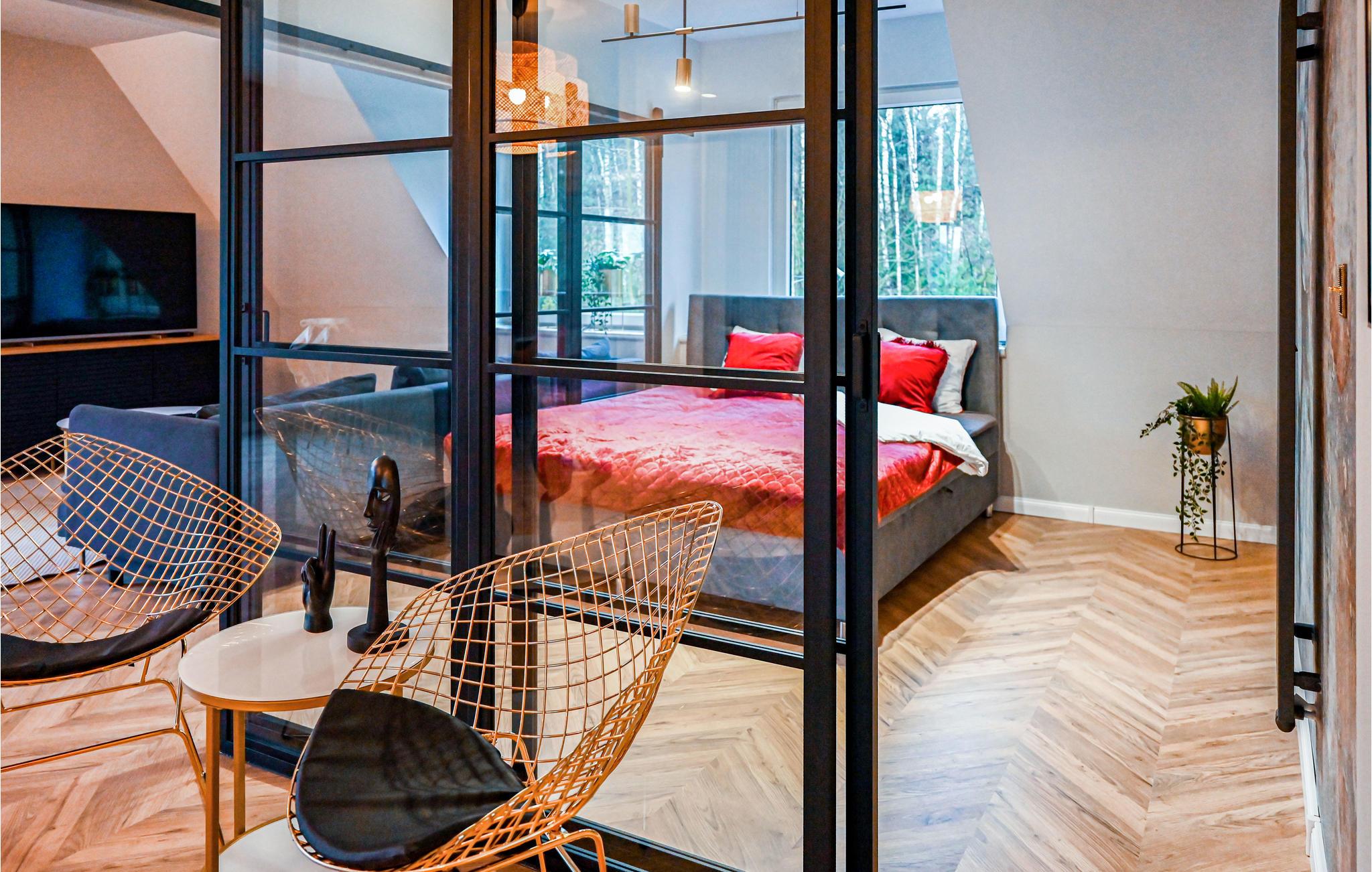 Die komfortable Ferienwohnung erwartet Sie nahe dem Radunski See. Mit ihrer individuellen, wohnlichen Einrichtung ist sie der ideale Ort für eine angenehme Auszeit nahe der Ostsee mit Ihren Lieben. Hier entspannen Sie in stilvollem Rahmen und können nach einem aktiven Tag in der Sauna wieder zu Kräften kommen.
