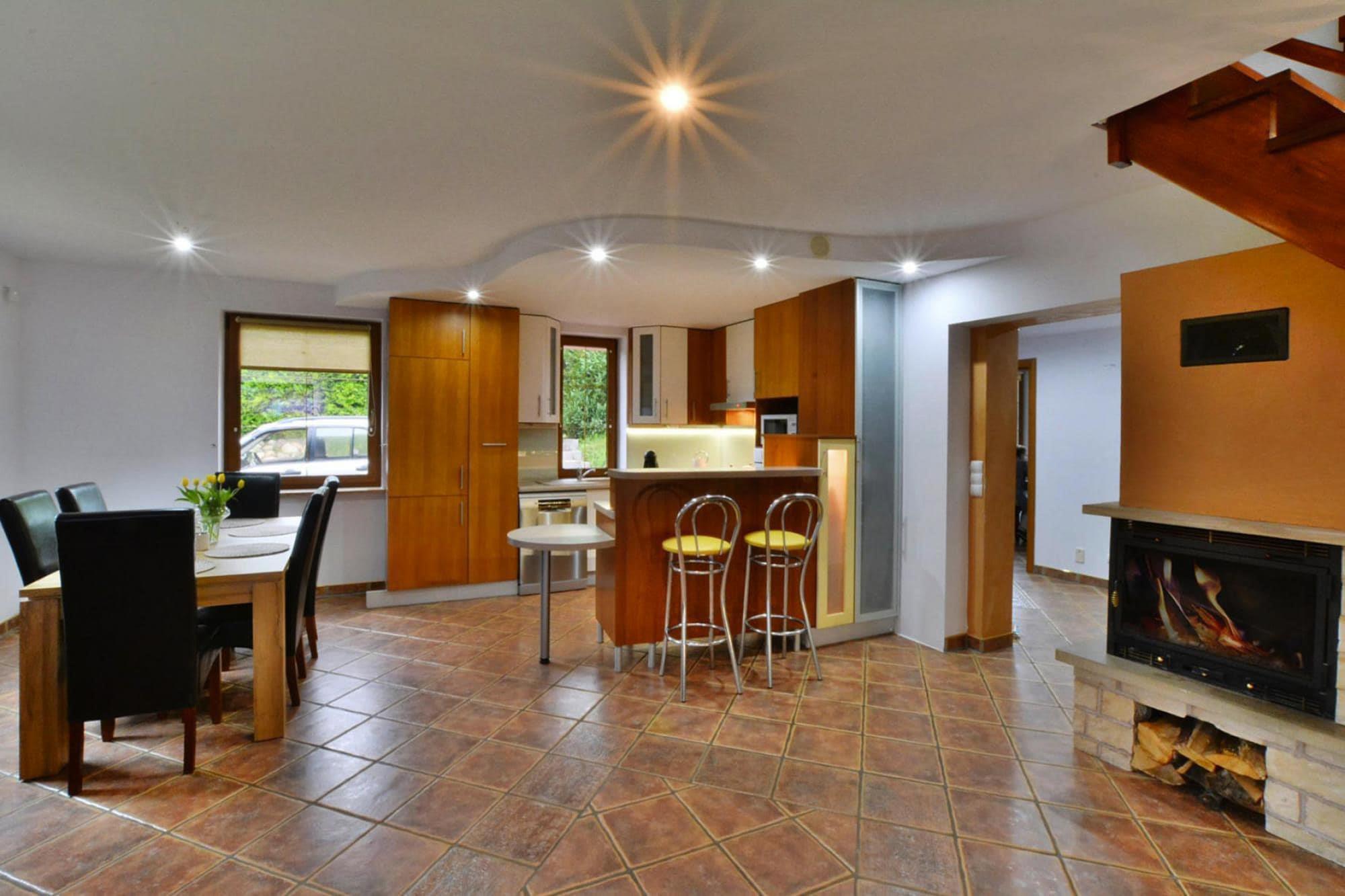 Das ruhige Dorf Swiecianowo, 10 km von einer größeren Stadt (Slawno) und 5 km vom See (Ostrowieckie-See) entfernt, wo es einen Strand- und Wasserausrüstungsverleih gibt. Die Fahrt zum Meer beträgt nur 25 km. Die unmittelbare Umgebung des Hauses sind Wiesen, Wälder und eine idyllische Landschaft. Viele Möglichkeiten für Spaziergänge und Radtouren in der Natur. Große Ferienvilla. 180 qm Wohnfläche, 5 separate Schlafzimmer und 2 Badezimmer. Das Haus liegt auf einem riesigen, eingezäunten Grundstück (5000 qm). Das Haus ist gut ausgestattet und eine perfekte Unterkunft für Gruppen und Familien mit Kindern. Neben Schlafzimmern und Badezimmern stehen vor Ort bis zu 2 Küchen zur Verfügung. Der erste, perfekt ausgestattete Raum ist mit einem geräumigen Wohnzimmer verbunden (großer Tisch, Kamin). Die zweite Küche befindet sich in einem separaten Raum. Im ersten Stock gibt es neben 4 separaten Schlafzimmern ein zusätzliches Wohnzimmer mit TV. WLAN ist verfügbar. Die Umgebung des Hauses ermöglicht es Ihnen, Zeit im Freien zu verbringen. Die große Rasenfläche bietet einen Rahmen für viele verschiedene Spiele und Aktivitäten. Es gibt auch einen Platz für ein Lagerfeuer und ein Gartenhäuschen, wo Sie einen schönen, geselligen Abend verbringen können. Der Eigentümer des Hauses wohnt im selben Dorf (ca. 1 km entfernt) und steht Ihnen jederzeit mit Rat und Tat zur Seite. Neben seinem Haus verfügt er über einen mit Fischen bestückten Angelteich, an dem er Gäste zum Angeln einlädt (gegen Aufpreis; bei Bedarf können Sie auch eine Grundausrüstung zum Angeln mieten). Der Besitzer der Anlage verfügt auch über Fischteiche, in denen er Forellen züchtet. Es ist möglich, solchen frischen Fisch direkt aus dem Teich zu kaufen. Im Preis des Aufenthalts sind enthalten: Bettwäsche, Strom- und Wasserverbrauch, Brennholz, Internet, Parkplatz, Babybett, Hochstuhl. Die Hauptattraktion hier sind die natürlichen Werte, weite Wiesen, dichte Wälder, ideal zum Wandern, Spazierengehen und Radfahren.