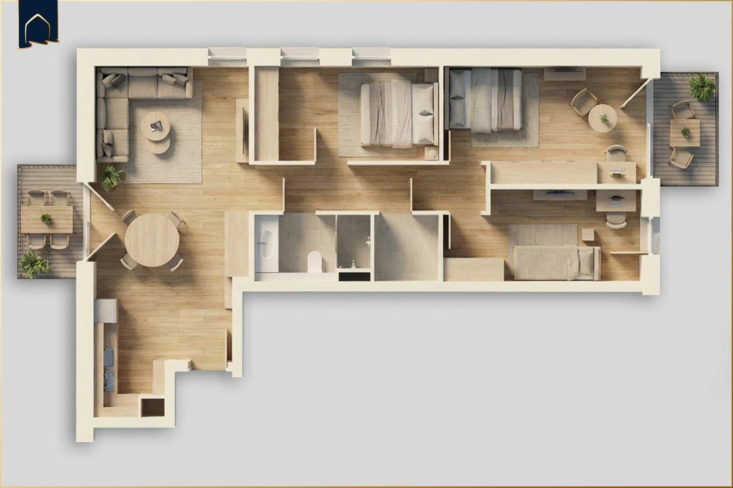 Die Ferienwohnung bietet drei separate Schlafzimmer und insgesamt fünf Schlafmöglichkeiten. Die Schlafräume sind ruhig gelegen und geschmackvoll eingerichtet, sodass erholsame Nächte gewährleistet sind. Ein zusätzlicher Arbeitsbereich mit Schreibtisch ermöglicht auch eine Workation in angenehmer Umgebung.