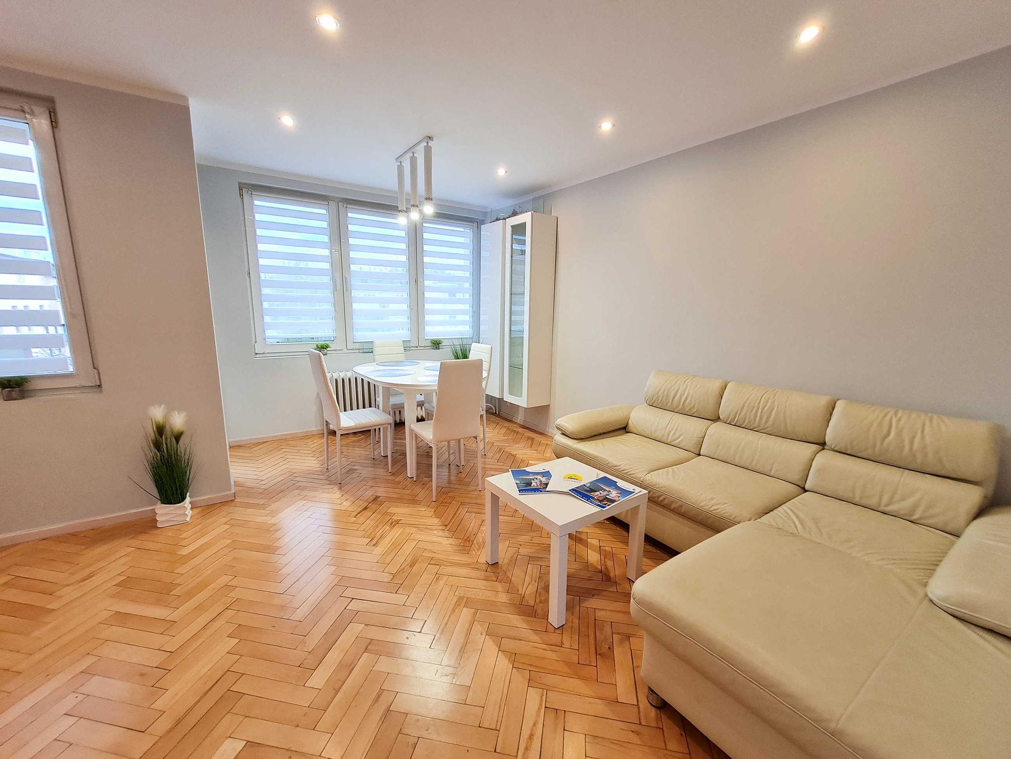 Das vierstöckige Gebäude, mit der Ferienwohnung PD09 steht zwischen zwei restaurierten Parks: Chopin Park und Kurpark. Die Promenade ist nur 750 m (9 Minuten zu Fuß) weiter entfernt. Eine ähnliche Entfernung trennt das Gebäude, in dem sich die Ferienwohnung befindet, vom Stadtzentrum. In unmittelbarer Nähe gibt es ein Lebensmittelgeschäft, Restaurants, Stände mit frischem Obst und Gemüse.