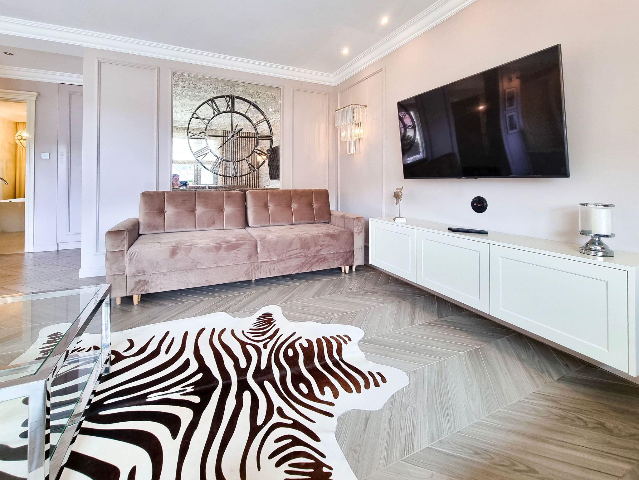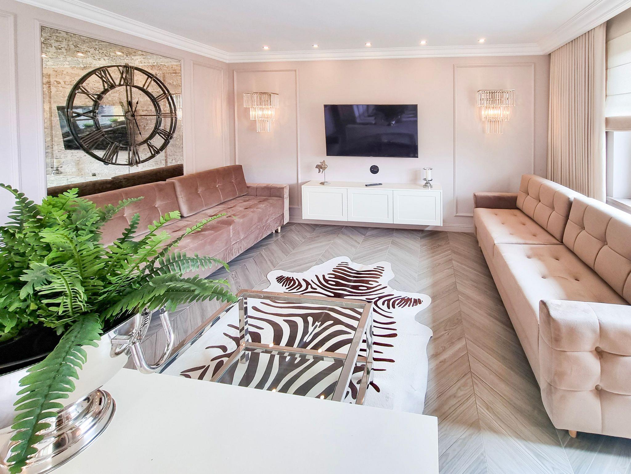 Lounge-Bereich mit nicht klappbaren Sofa 2 Sesseln, TV-Ecke (TV von Anbieter Vectra + Smart Tv).