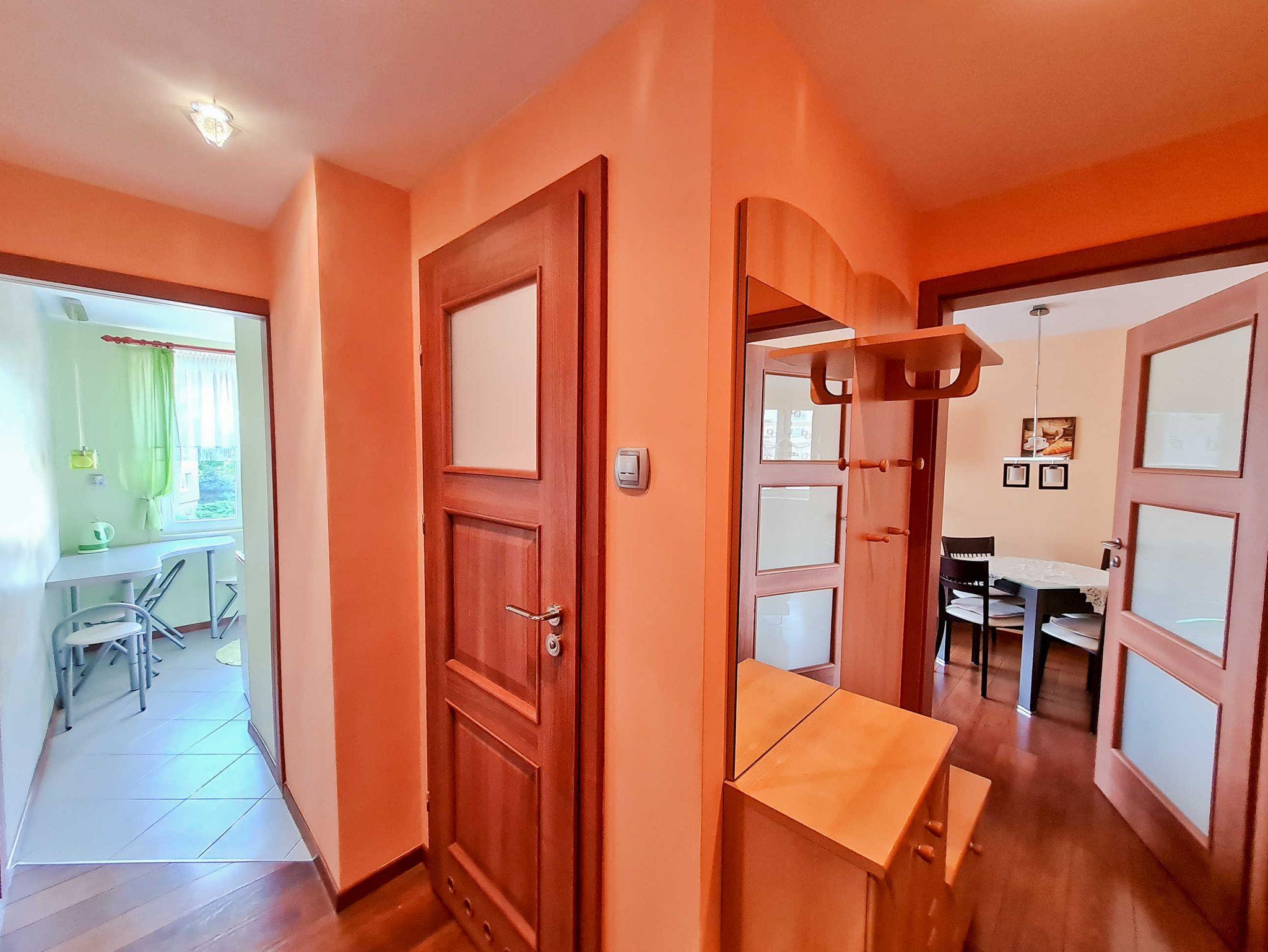 Die 2-Zimmer-Wohnung (47m2), befindet sich im 1. Stock eines Mehrfamilienhauses in der Matejki-Straße (Gebäude ohne Aufzug, nur mit Treppen erreichbar).