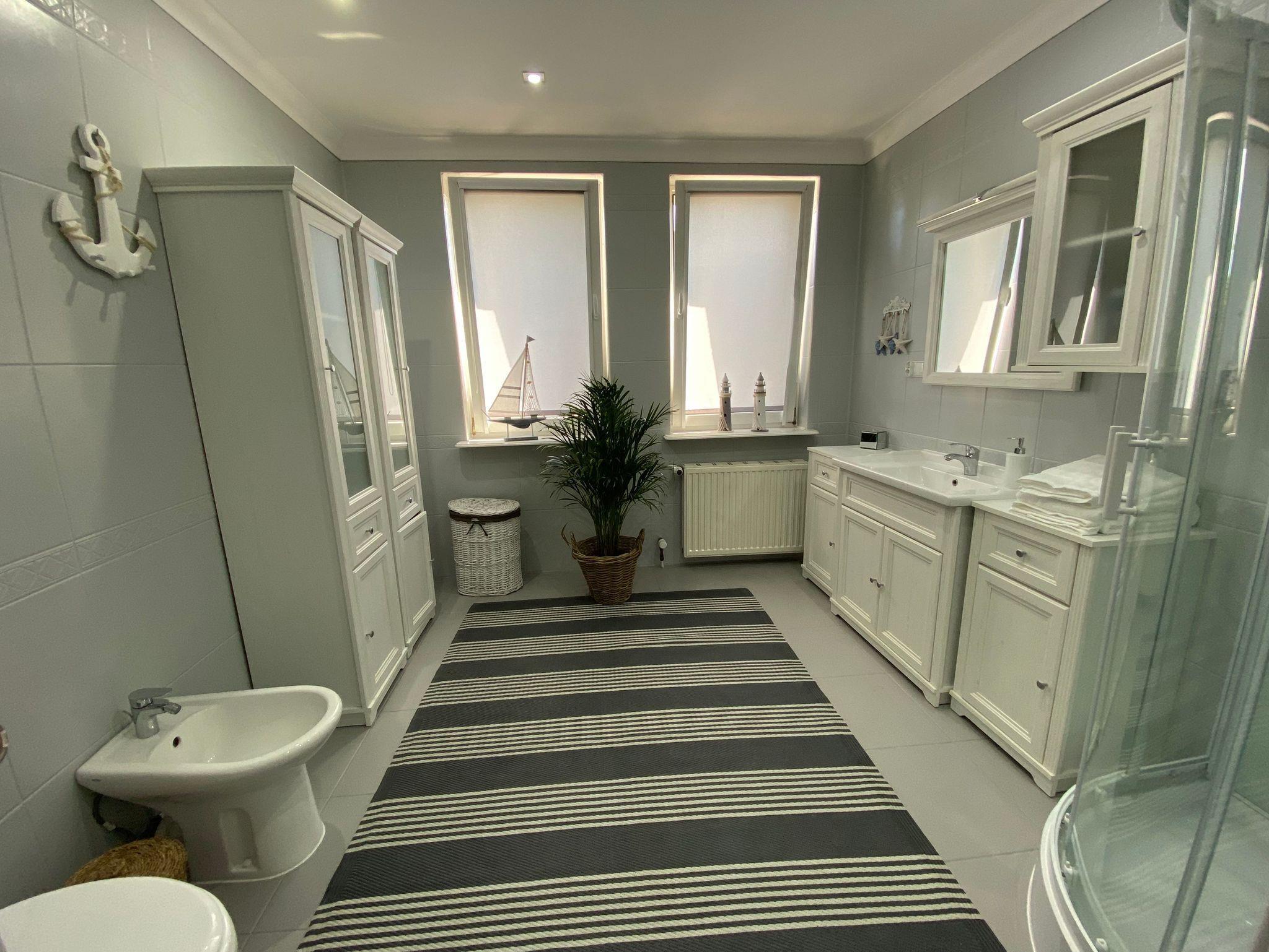 Ferienhaus, außergewöhnliches Angebot in Swinemünde. Es gibt eine separate Wohnung im Erdgeschoss des Gebäudes, mit zwei Schlafzimmern (70m2) und ein Wohnzimmer, und 3 Etagen des Hauses (240m2). Villa Blue Marine befindet sich in unmittelbarer Nähe zum Kurpark, etwa 1400m vom Strand entfernt. In der Nähe Fähren, Segelhafen, Geschäfte, Spielplatz