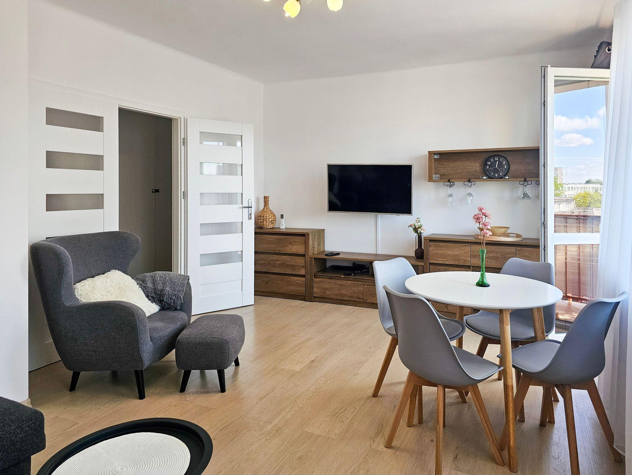 Die Wohnung hat polnisches und englisches Fernsehen, Wifi Zugang.
