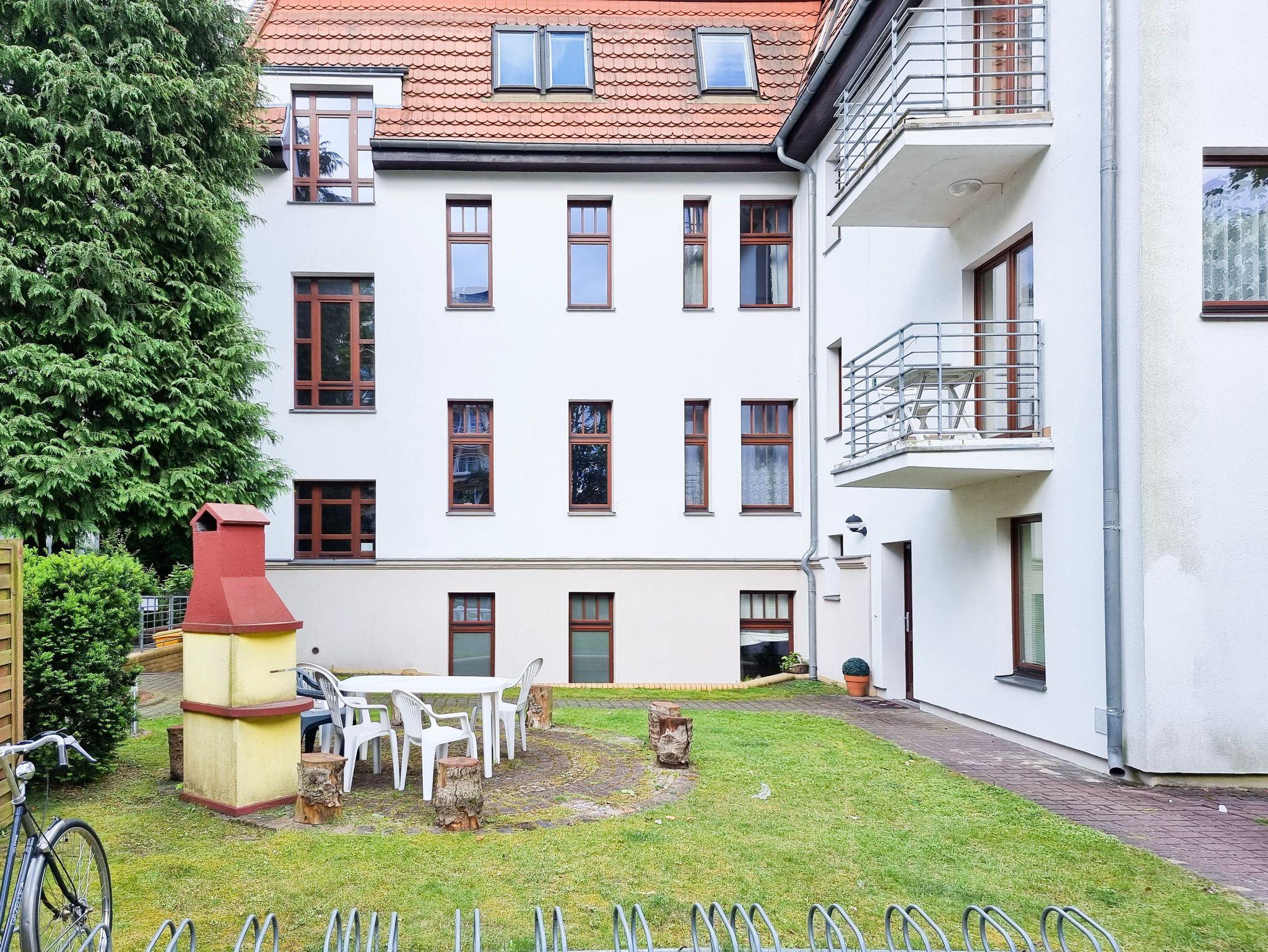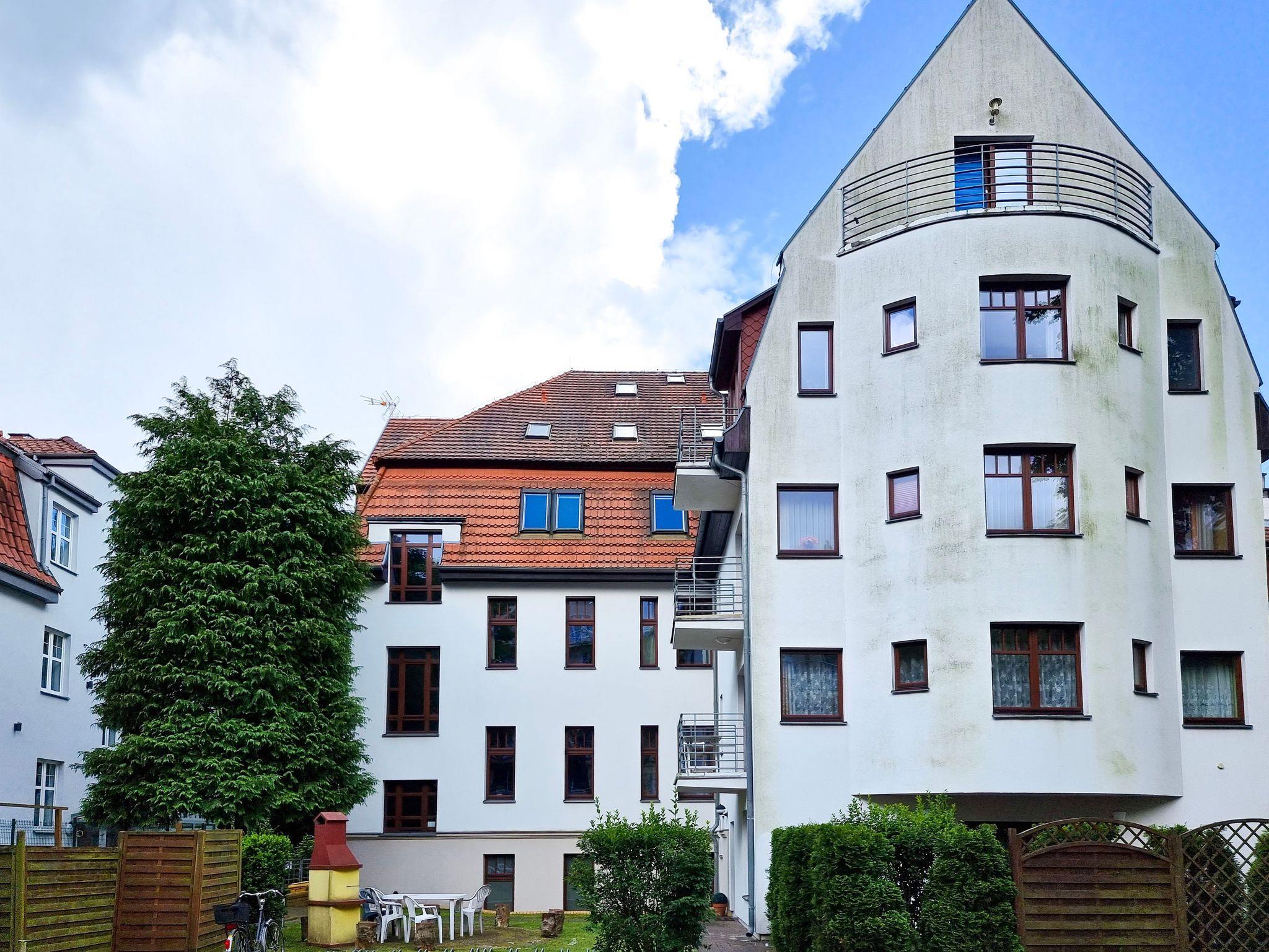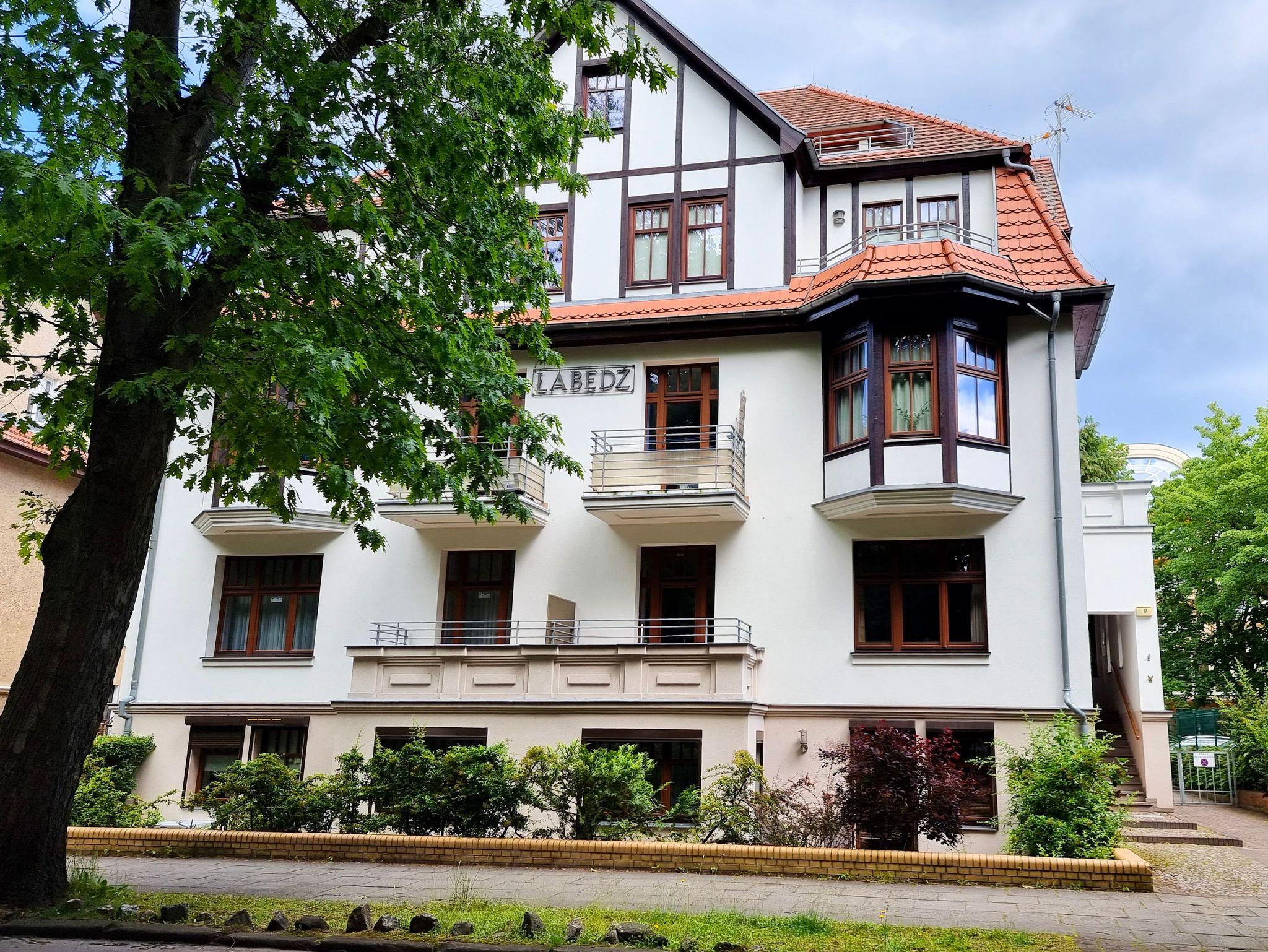 Im Rahmen eines komplexen Ausbaus und Modernisierung des Gebäudes ist es gelungen, die schönen Züge der Architektur der 20er Jahre sowohl außen als auch im Innern des Gebäudes beizubehalten. Das Haus hat vier Stockwerke mit ausgebautem Dachgeschoss. Zu Ihrer Verfügung stehen sehr individuell eingerichtete Appartements mit Bad, Küchenzeile und Satellitenanschluss. Darüber hinaus haben Sie die Möglichkeit auf dem Hof einen Parkplatz (I) zu mieten.