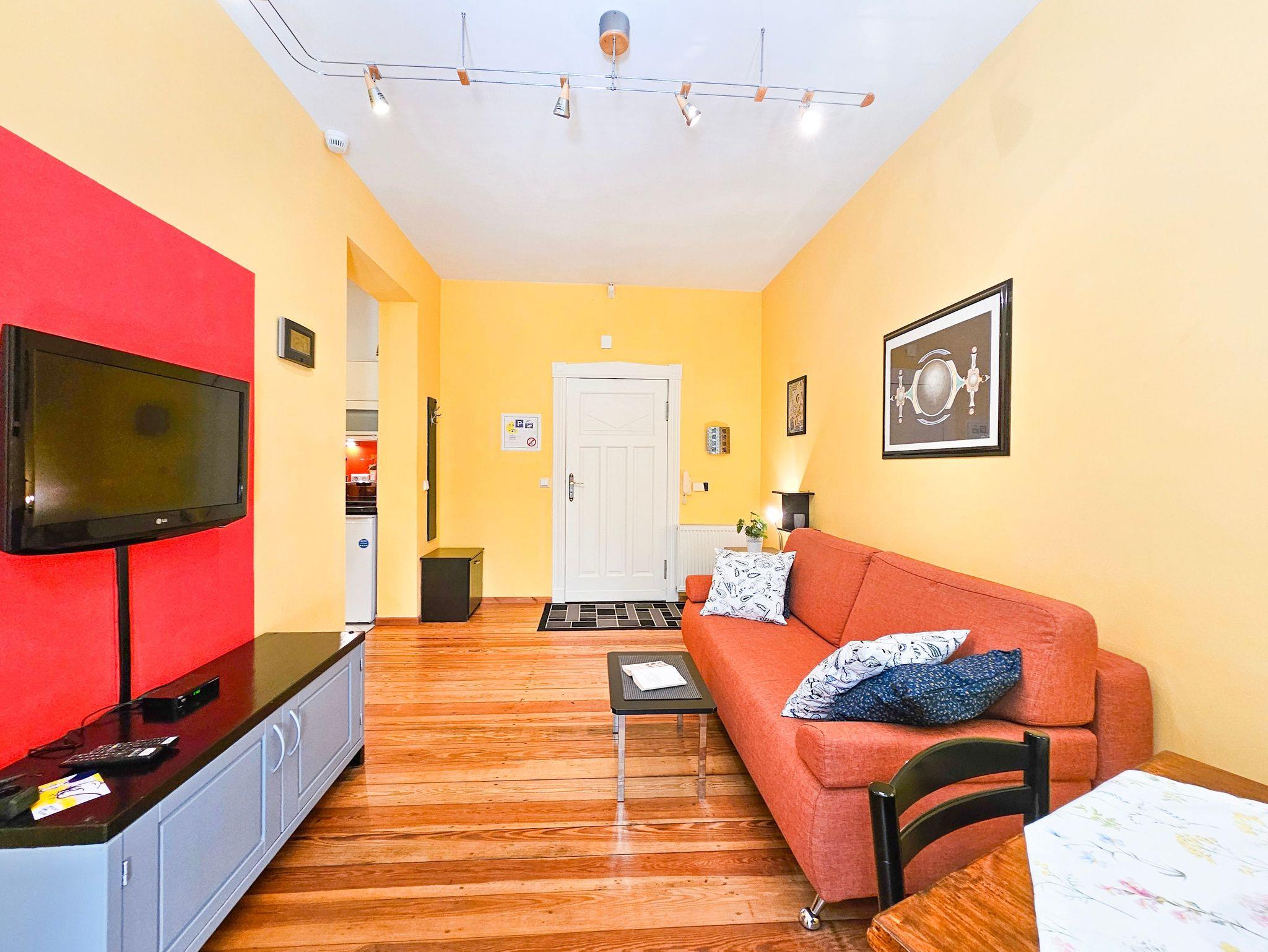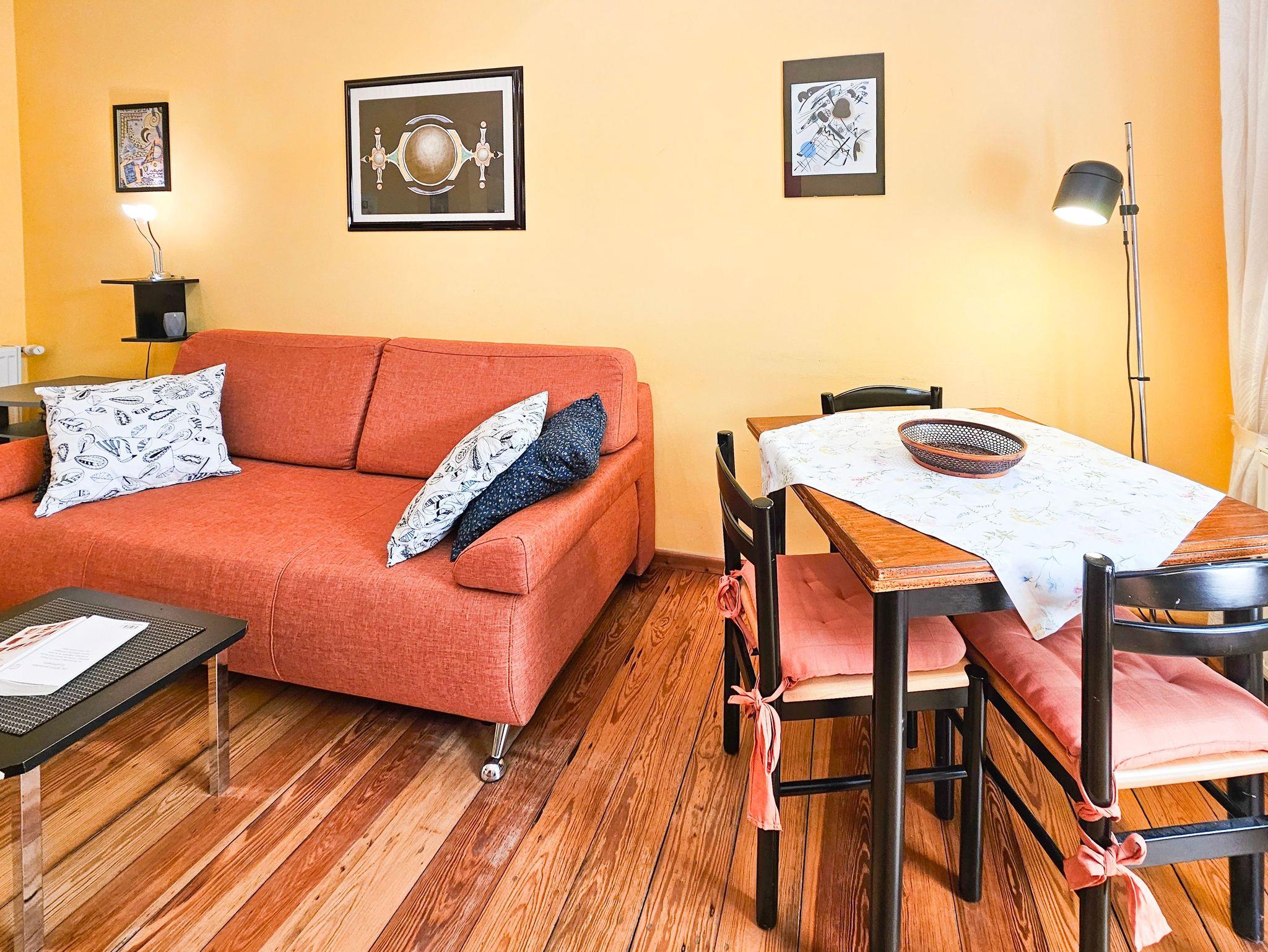Eine gemütliche 1-Zimmer Wohnung für 2 Personen mit Balkon von der Südseite des Hauses. Wohnung ausgestattet. Darüber hinaus haben Sie die Möglichkeit auf dem Hof einen Parkplatz (I) zu mieten.