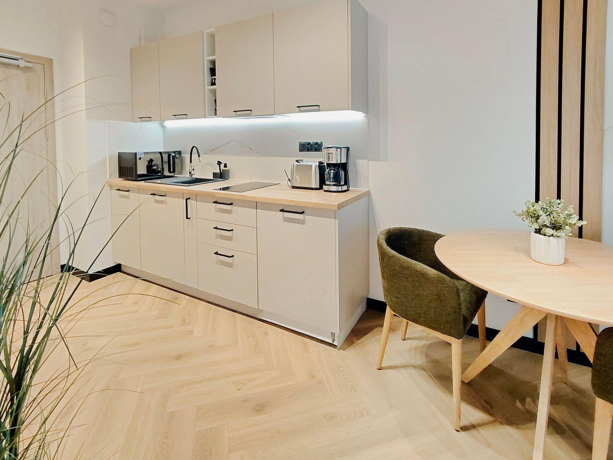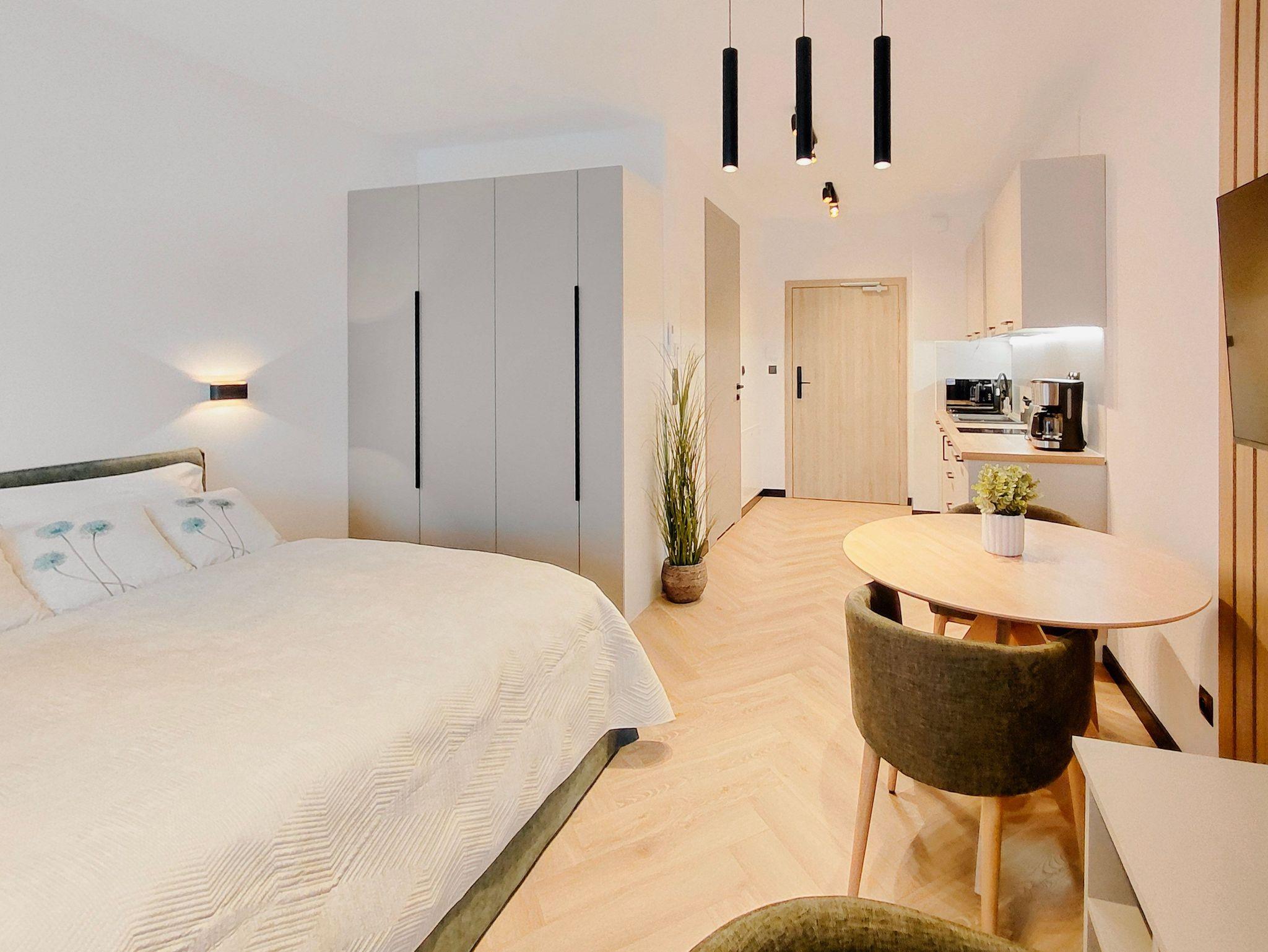 Das Apartment verfügt über WLAN, kleine Hunde sind willkommen.