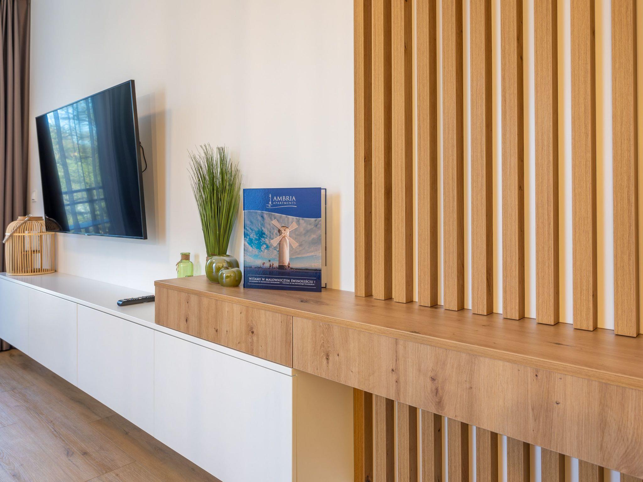 Die Wohnung "Matejki 26" in Swinemünde ist eine elegante Wohnung in einem Apartmenthaus aus dem Jahr 2021. Einzigartig ist auch die Lage der Wohnung: Sie befindet sich in unmittelbarer Nähe zur Promenade (ca. 500 m) und neben einem Park mit einem gut ausgestatteten Spielplatz für Kinder. Dank des umgebenden Grüns bietet es Ruhe und die Nähe zu wohltuender Natur, die Erholung von der täglichen Hektik. In der Nähe gibt es auch berühmte Geschäfte, Bars, Cafés und Restaurants, in denen Sie aromatischen Kaffee trinken oder lokale Spezialitäten probieren sowie schöne Bernstein-Souvenirs kaufen können.