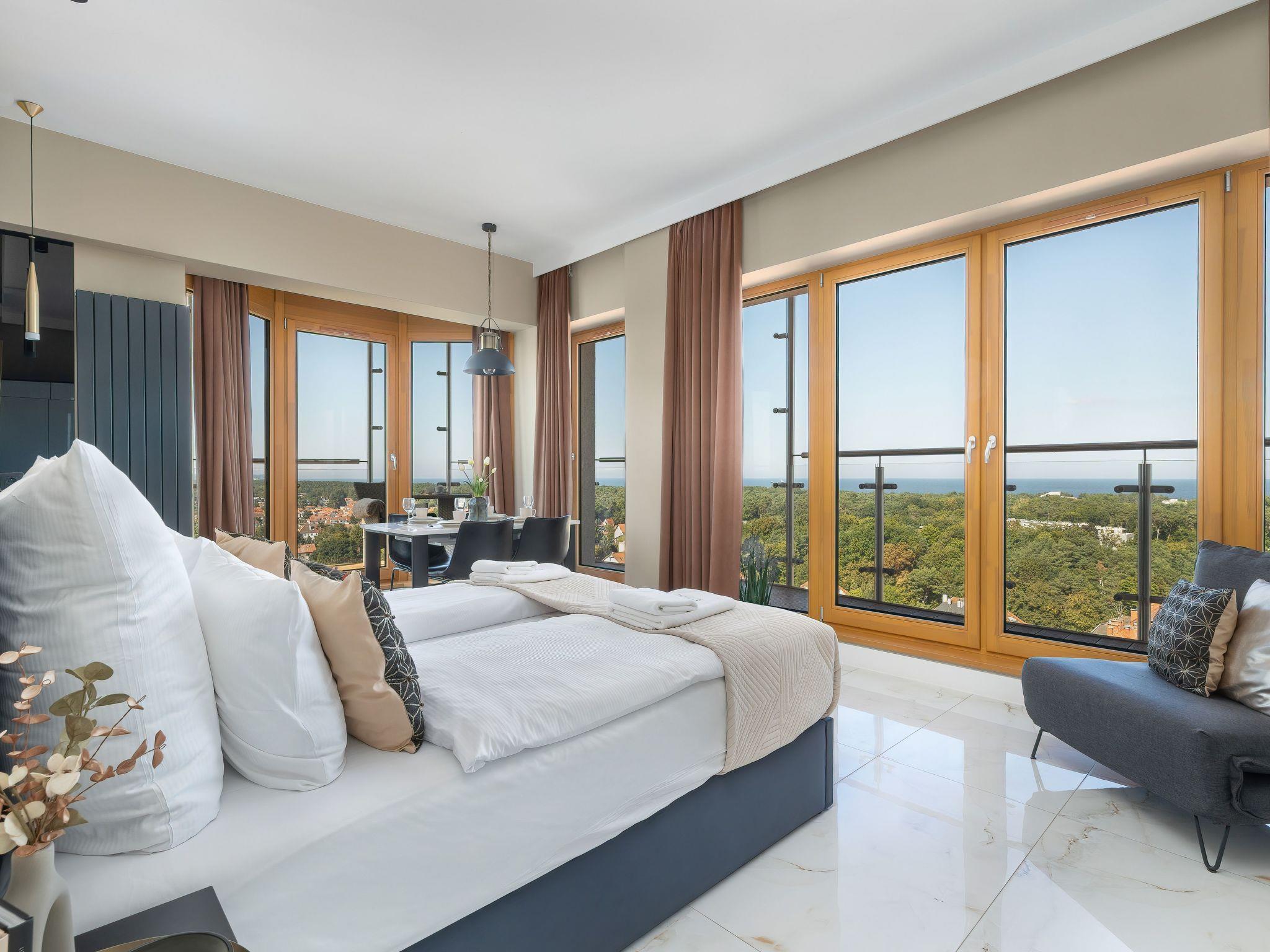 Entdecken Sie das Herzstück für einen unvergesslichen Urlaub an der Ostsee in der Ferienwohnung 114 in Swinemünde (Swinoujscie), perfekt für Liebhaber von Exklusivität und Erholung. Gelegen im 13. und somit obersten Stockwerk des modernen Platan Complex, öffnet sich Ihnen ein spektakulärer Ausblick auf das Meer und die Stadt, der jeden Morgen zu einem Highlight macht und Ihren Aufenthalt unvergesslich werden lässt.